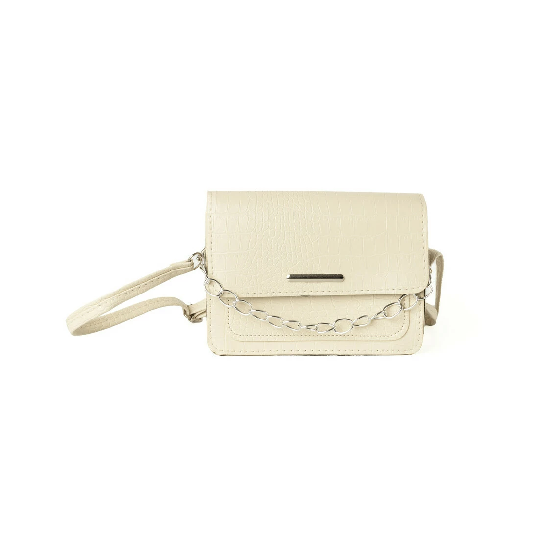 Сумка жіноча зі штучної шкіри "під крокодила", з ланцюжком і ремінцем, маленька сумочка клатч, Молочний