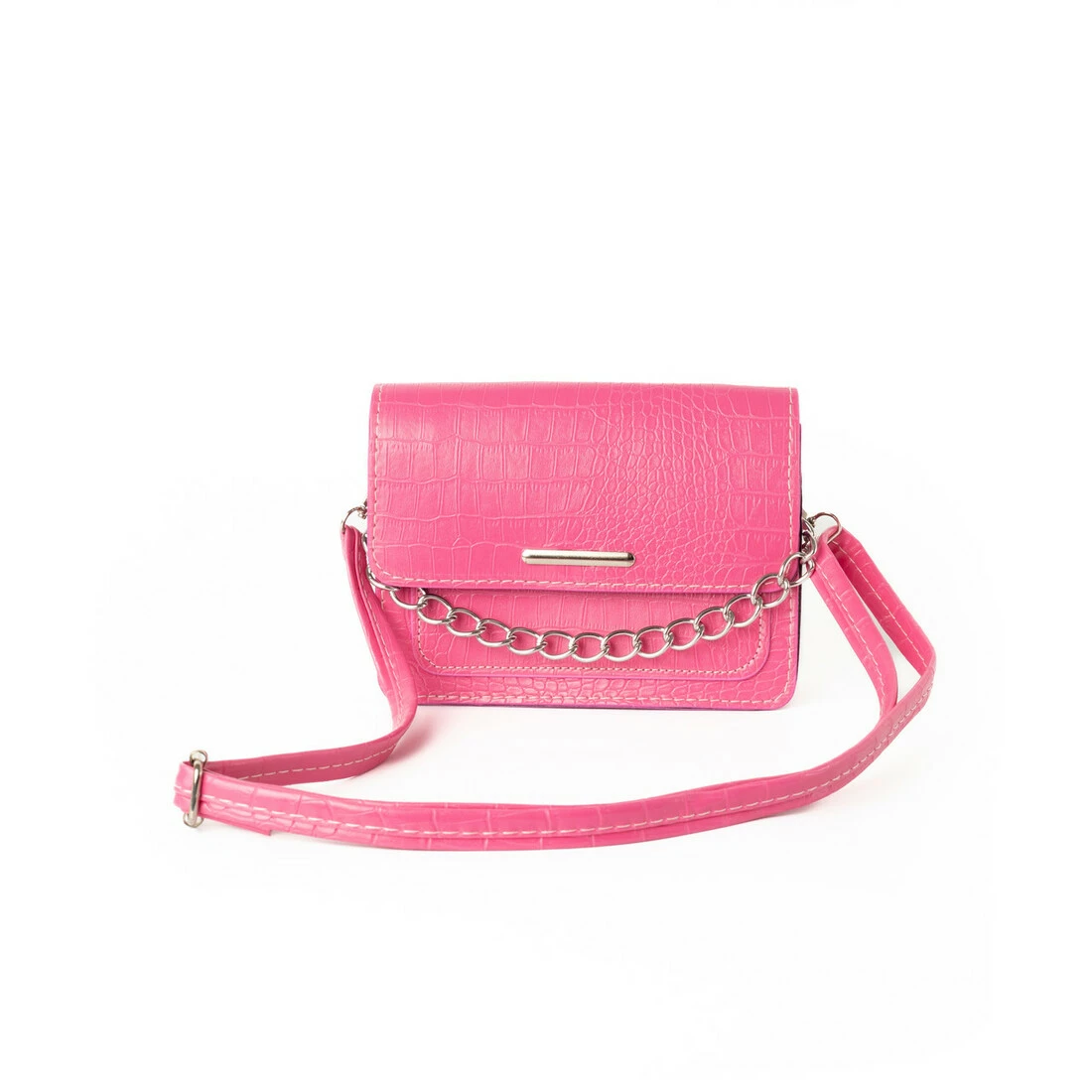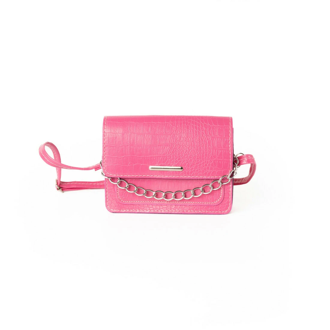 Сумка жіноча зі штучної шкіри "під крокодила", з ланцюжком і ремінцем, маленька сумочка клатч, Рожевий