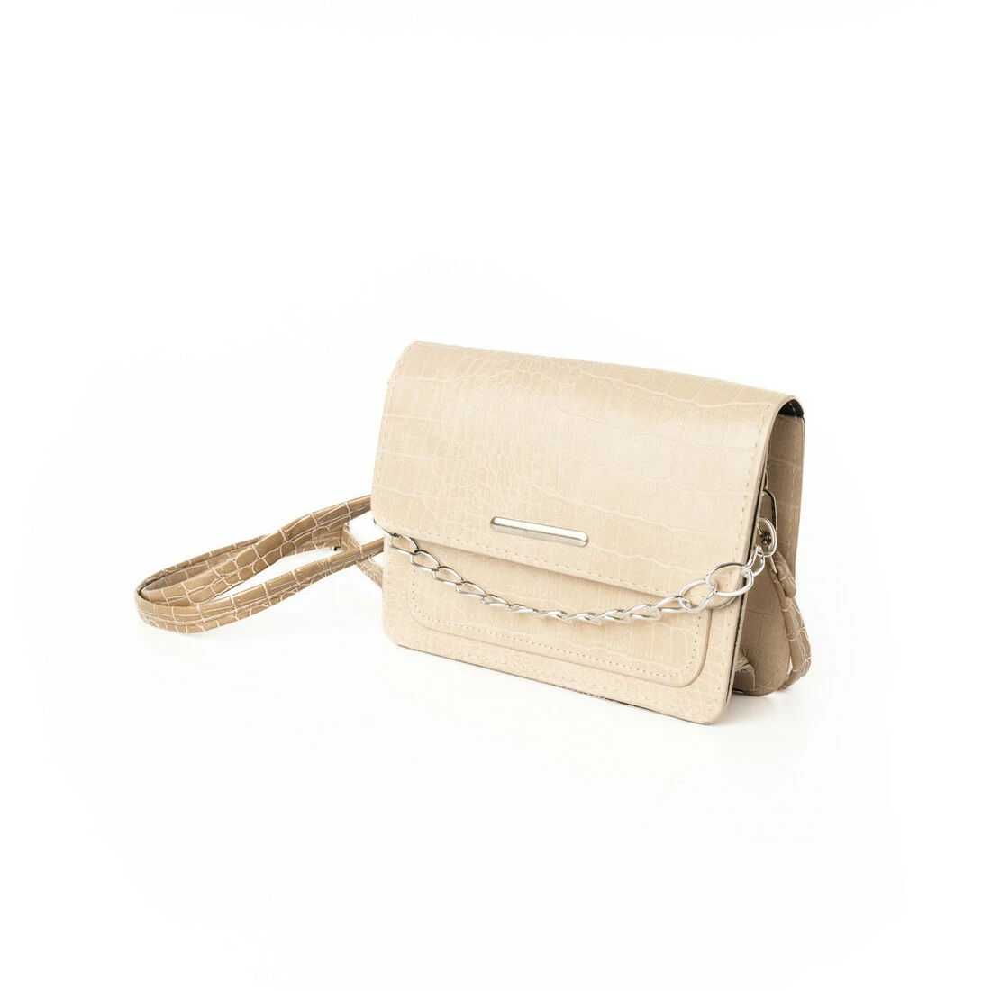 Сумка жіноча зі штучної шкіри "під крокодила", з ланцюжком і ремінцем, маленька сумочка клатч, Світло-бежевий