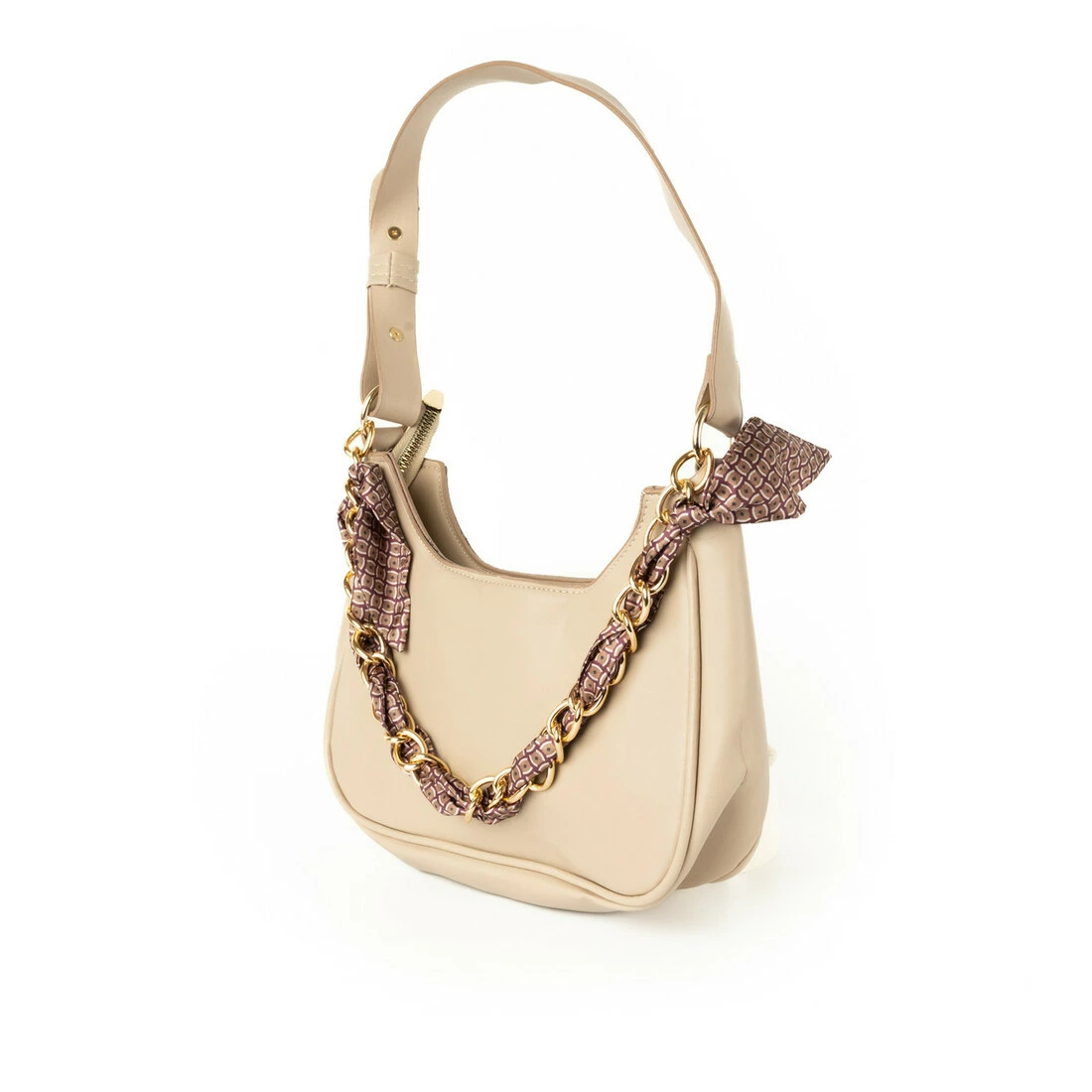 Сумка жіноча зі штучної шкіри, сумочка з ручкою-ланцюжком та стрічкою, Молочний