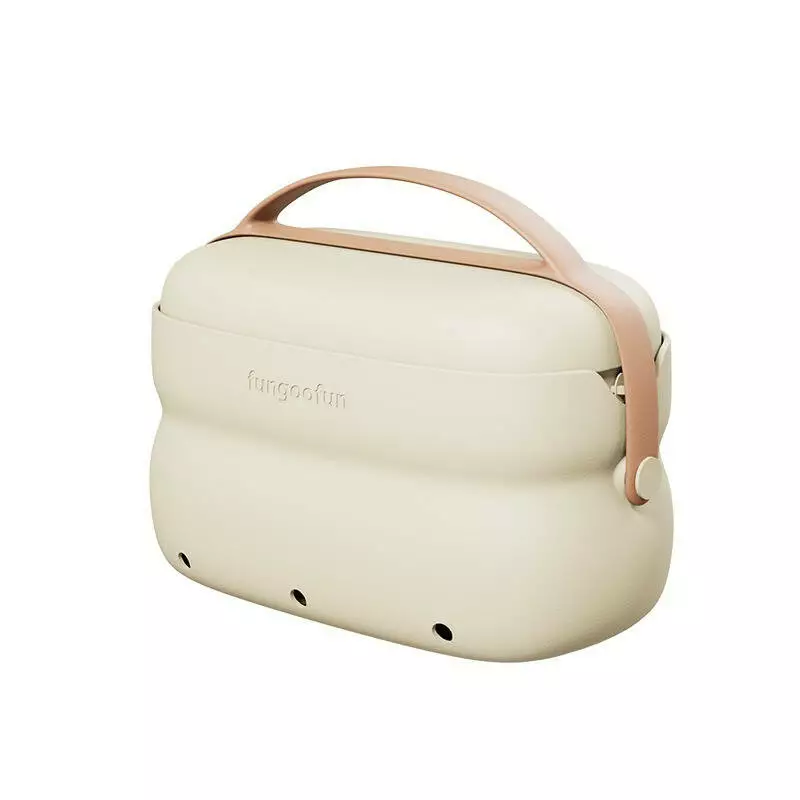 Сумка складається з двох частин. Перша частина – це водонепроникна косметичка на блискавці, яка ідеально підходить для зберігання сухих речей, косметики та аксесуарів. Друга частина виконана у вигляді кошика з силіконовою ручкою, призначеного для зберігання вологих речей. Спеціальні отвори в нижній частині кошика забезпечують ефективний злив води, запобігаючи її накопиченню всередині. Весь аксесуар виготовлений із екологічно чистого та безпечного матеріалу EVA, який відзначається еластичністю, м'якістю та стійкістю до вологи та забруднень.