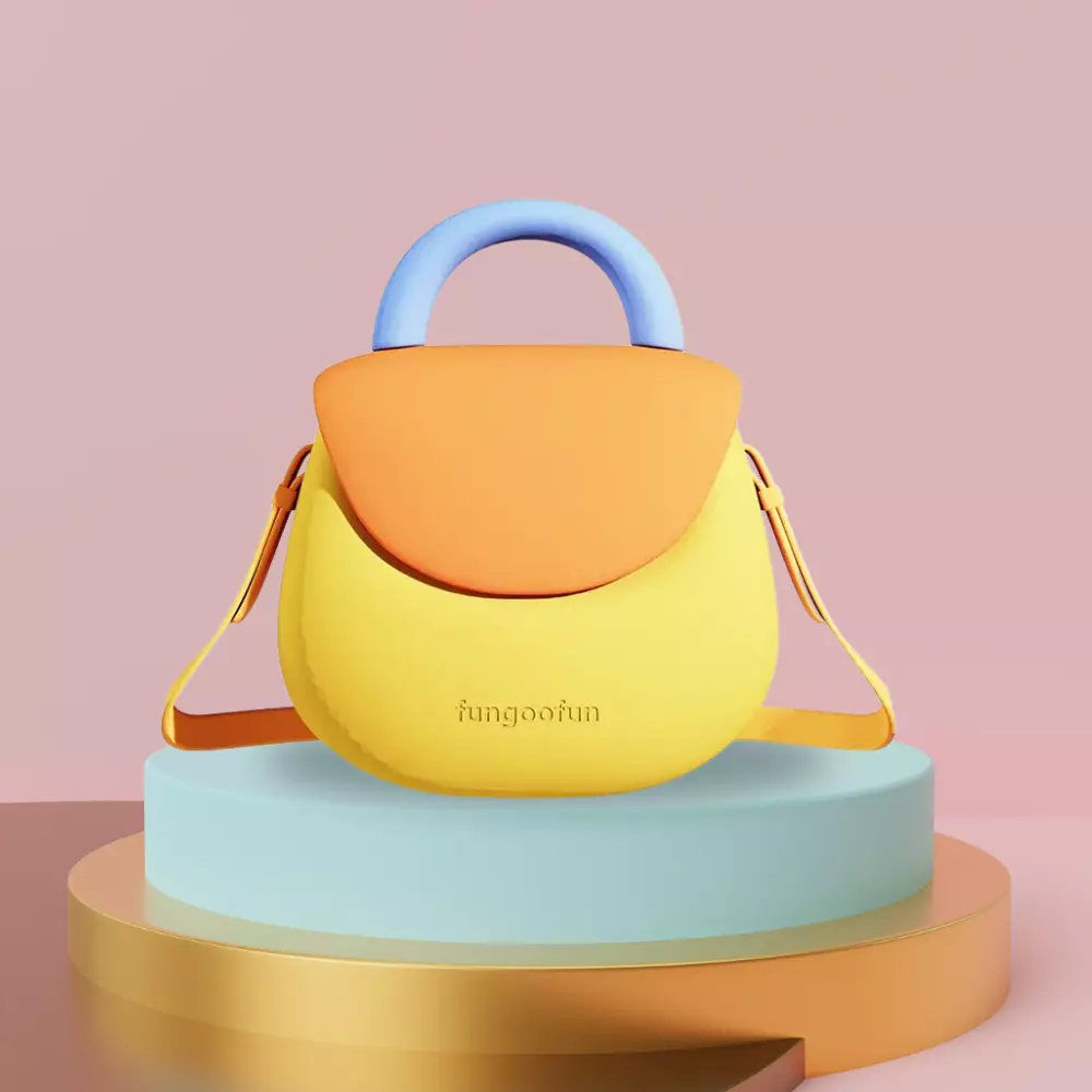 Сумочка силіконова клатч жіночий на ремінці з ручками водонепроникна сумка Fungoofun, жовта з помаранчевим