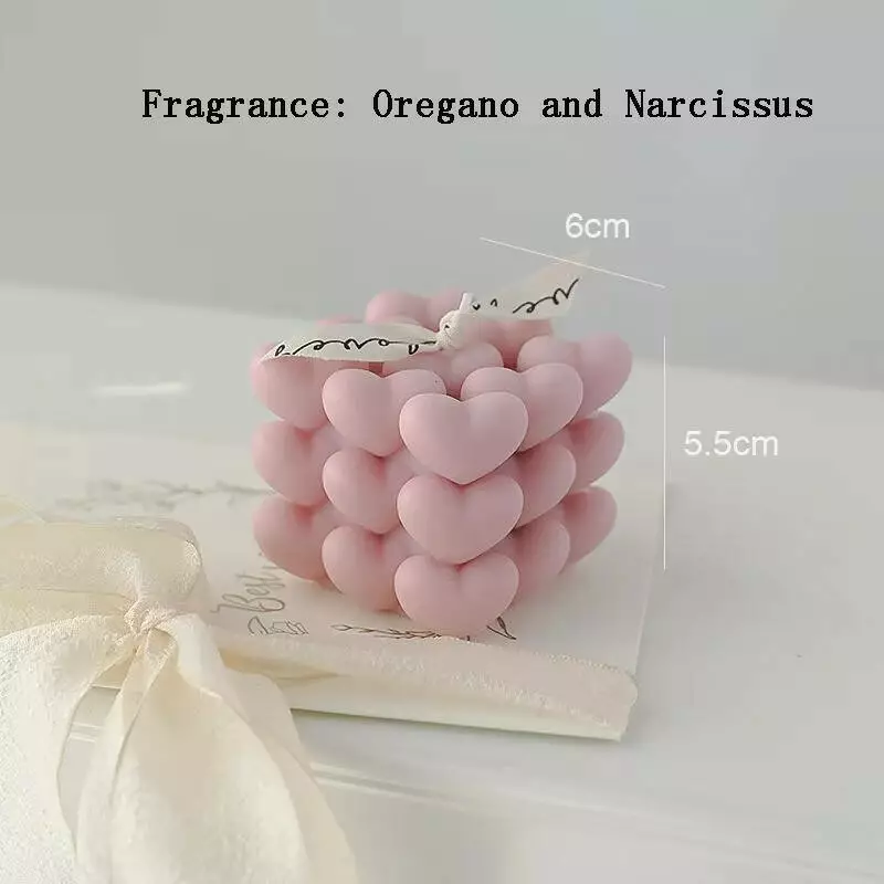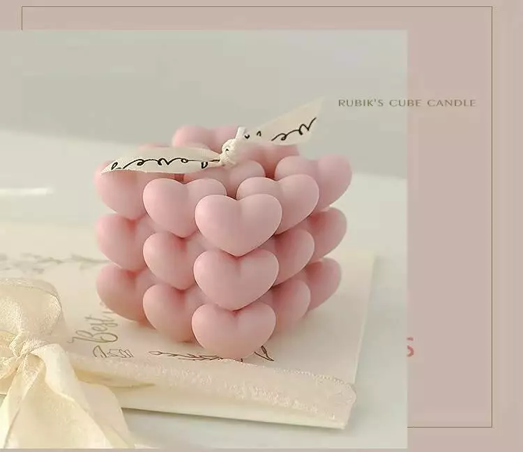 Свічка ароматична "Кубик сердець" ручної роботи у моранді-рожевому кольорі