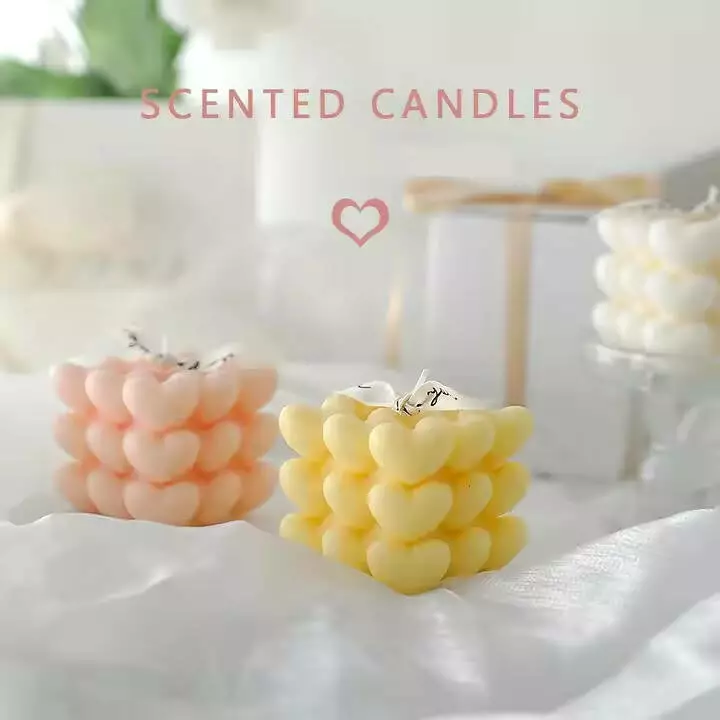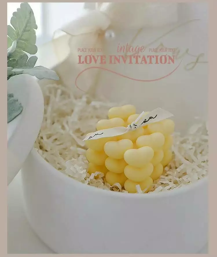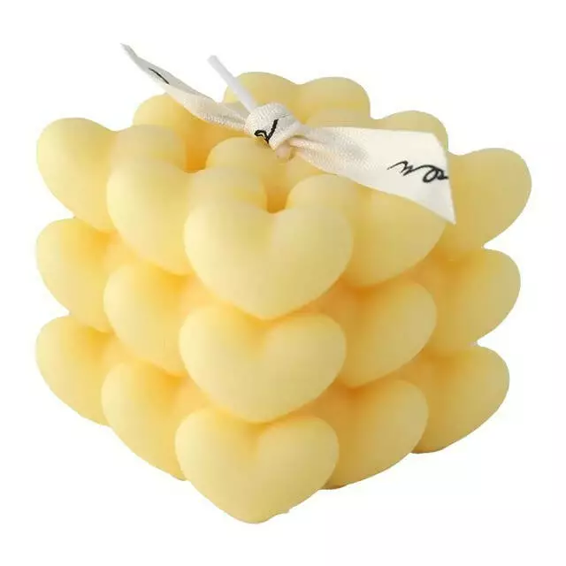Свічка ароматична "Кубик сердець" ручної роботи у жовтому кольорі