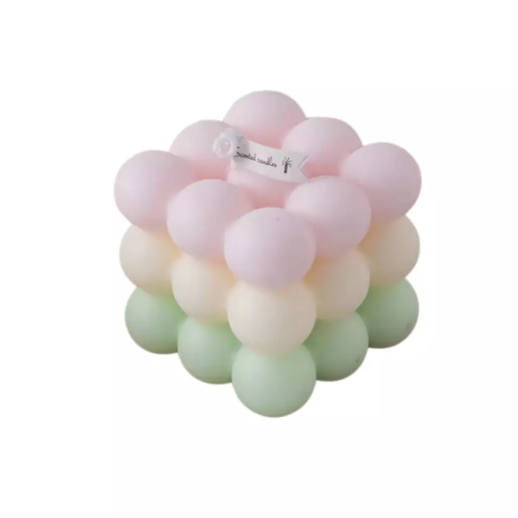 Свічка "Кубик бульбашок" ручної роботи колір рожевий,зелений,білий