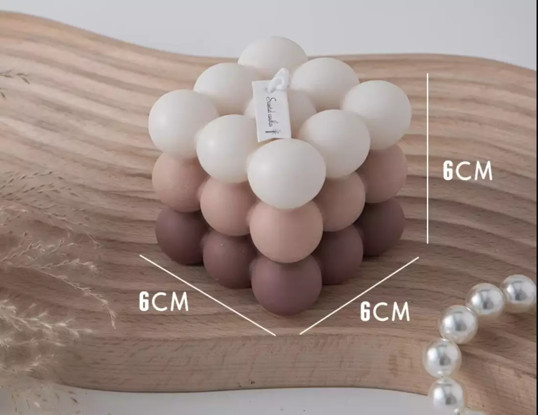 Свічка "Кубик бульбашок" ручної роботи в коричневому кольорі