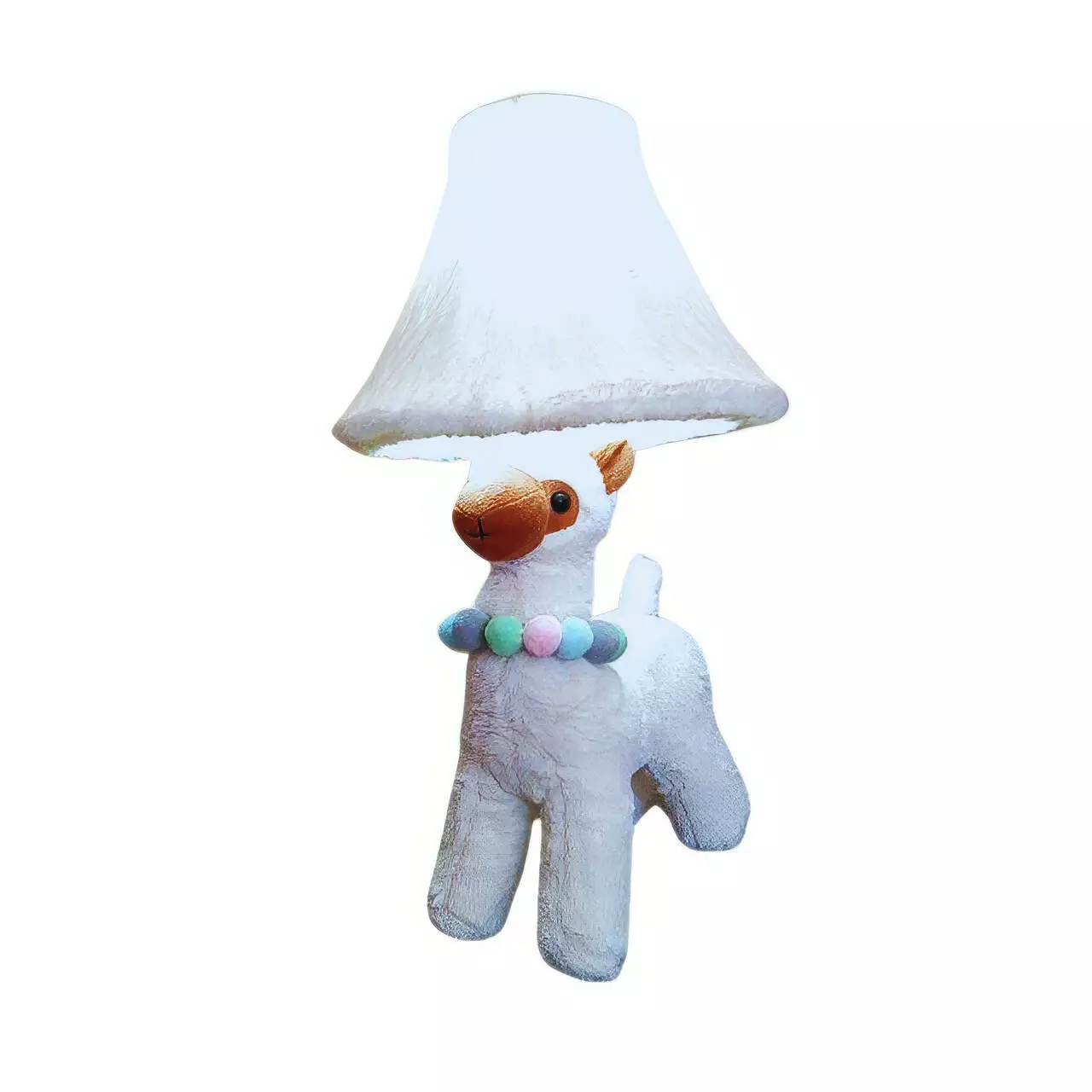 Чарівна настільна лампа у вигляді білої плюшевої альпаки створить затишну та казкову атмосферу в дитячій кімнаті. Її м'яка тканинна обробка приємна на дотик, а знімний плафон можна прати, що робить догляд за світильником простим і зручним. Компактні розміри дозволяють розмістити лампу на робочому або приліжковому столику, забезпечуючи комфортне освітлення.