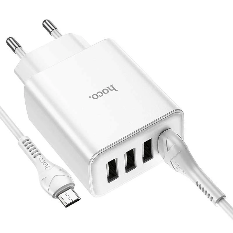СЗУ зарядний пристрій HOCO C102A 4USB/2,1A з кабелем для заряджання USB - MicroUSB, Білий
