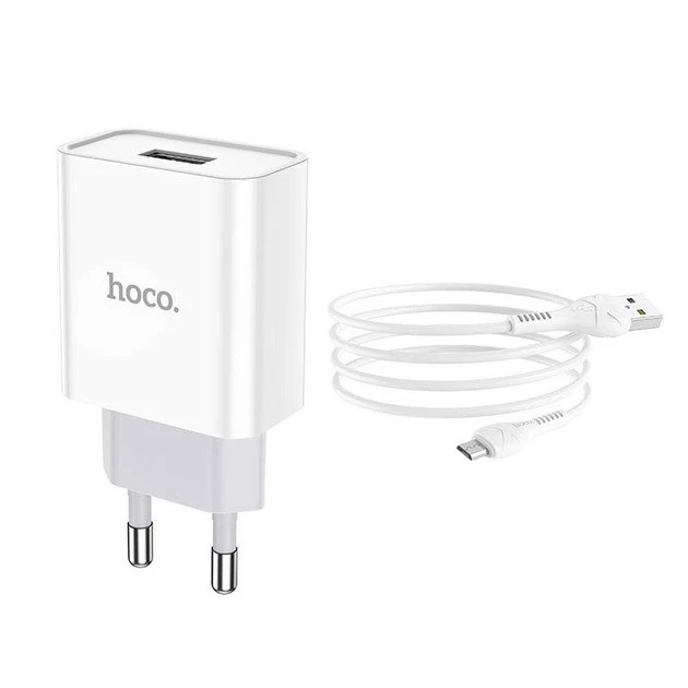 СЗУ зарядний пристрій HOCO C81A 1USB/2.1A з кабелем для заряджання USB - MicroUSB Білий