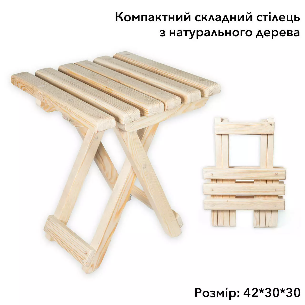 Табурет дерев'яний з натурального дерева (ялина), що складається з компактного стільця для дому та саду