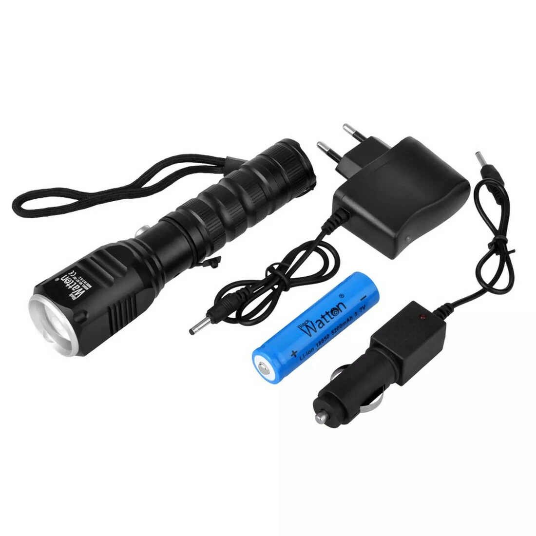 Комплектація: ліхтар, зарядний кабель, автоматичне заряджання, акумуляторна батарея.