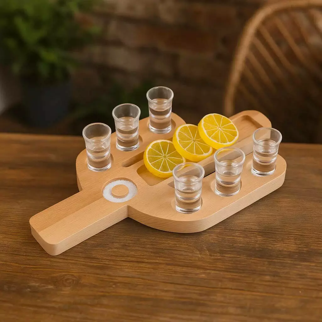 Дерев'яна таця для текіли у формі кактуса - стильний аксесуар для