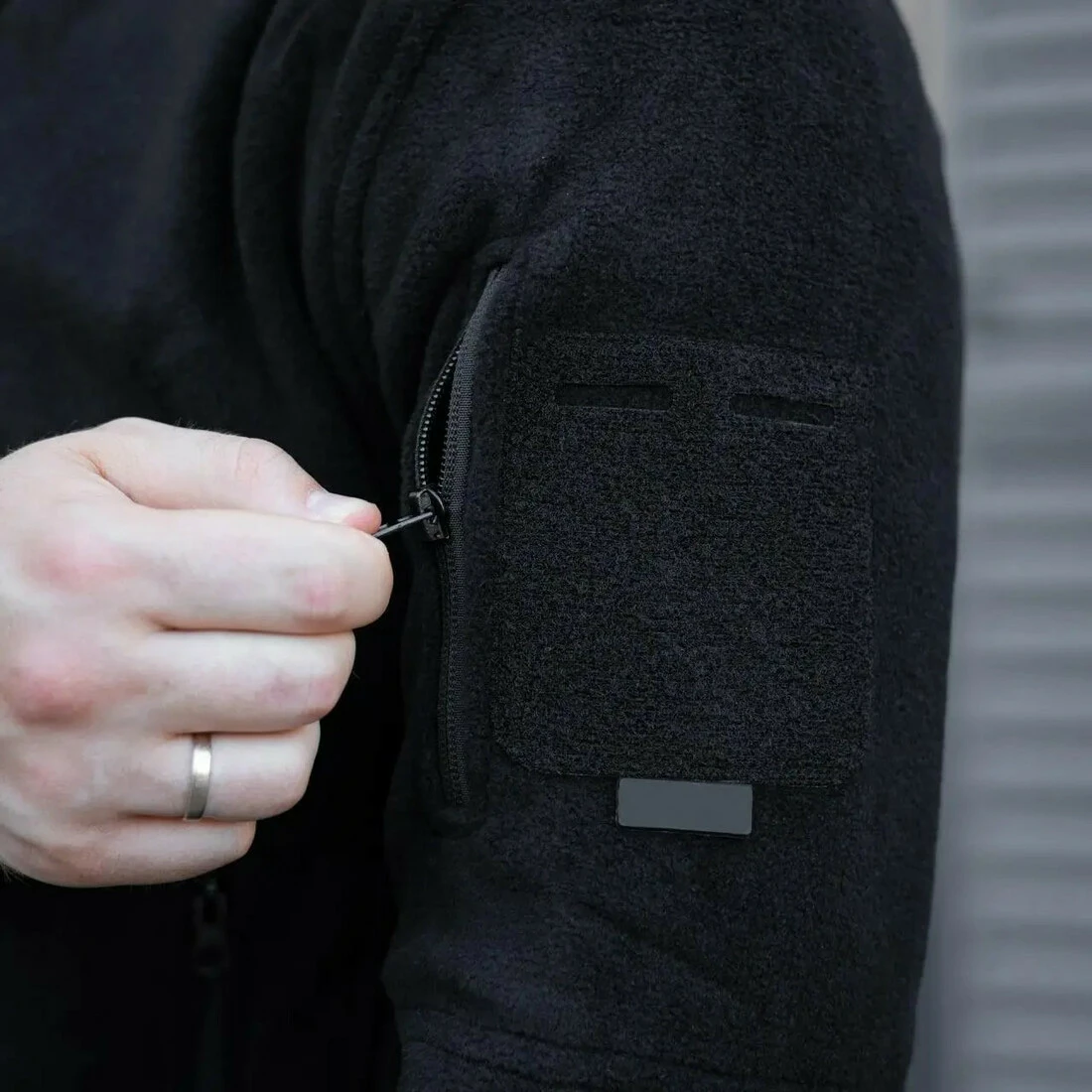 Тепла флісова тактична кофта для армії зсу, Армійська кофта чорного кольору з кишенями на блискавці розмір L