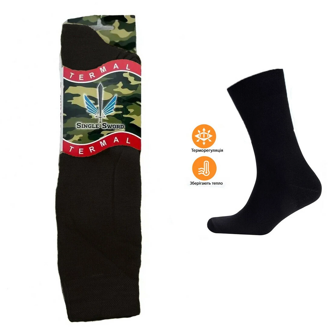 Термоноски Singl Sword. Еластичний трикотаж добре облягає ногу.