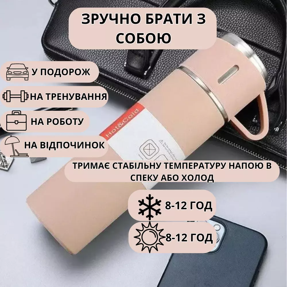 Подарунковий набір: вакуумний термос 500 мл з нержавіючої сталі з 3