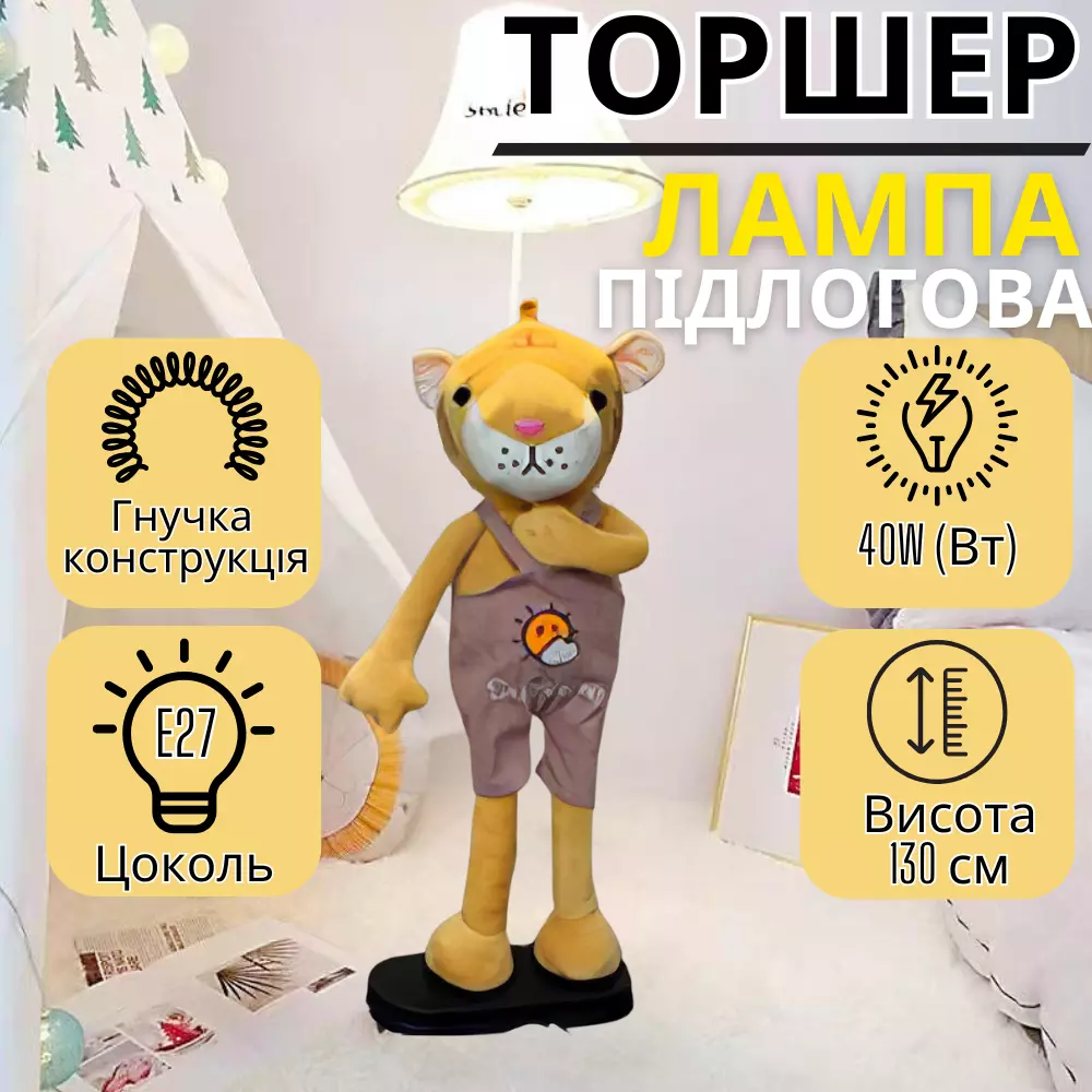 Торшер підлоговий лампа в дитячу кімнату. Світильник “Тигреня” в дитячу спальню, цоколь Е27, потужність 40W.
