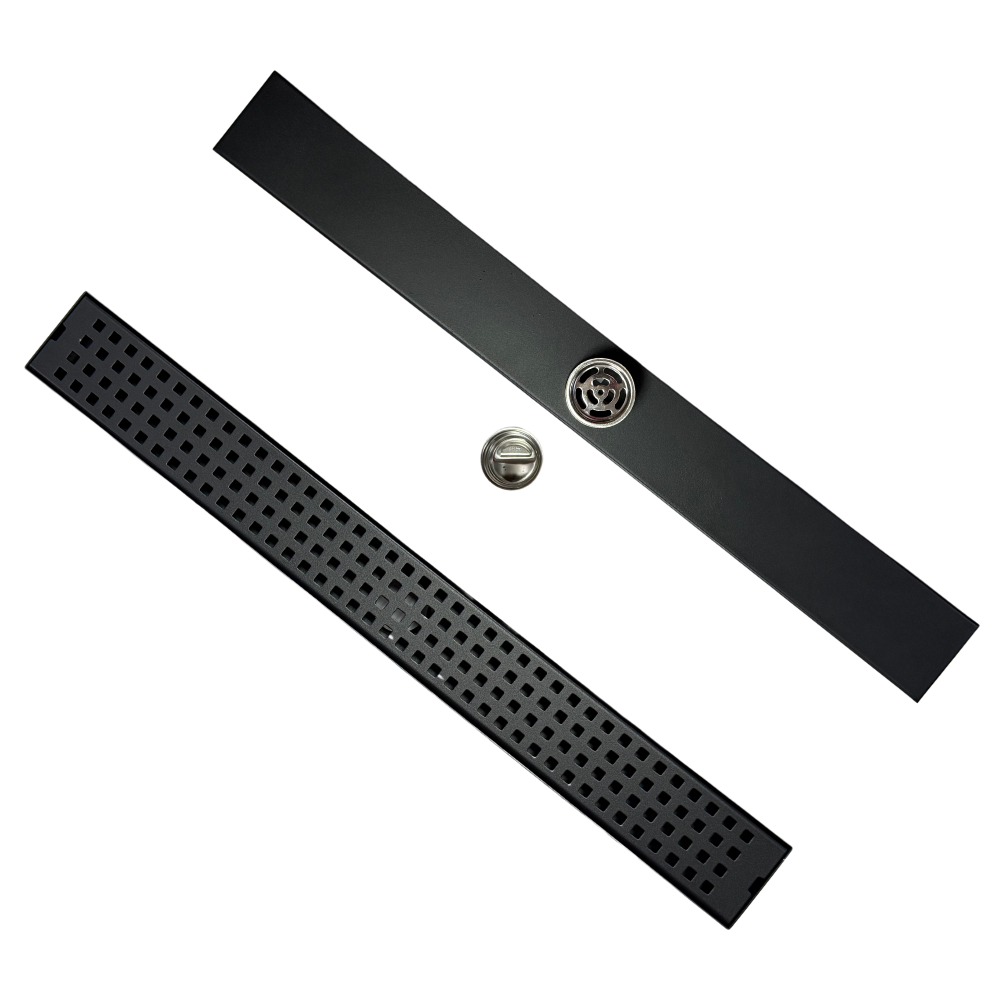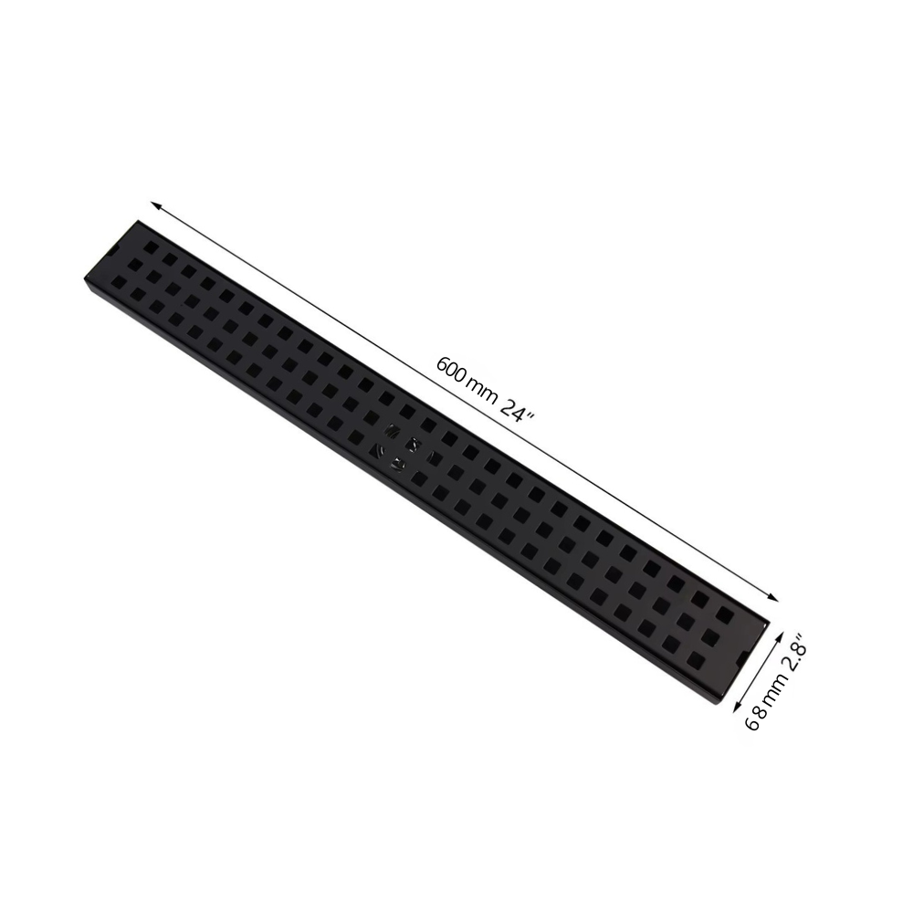 Трап для душу та ванної кімнати під плитку з нержавіючої сталі для зливу води, лінійний, підлоговий 60х6. 8х2 см,чорний