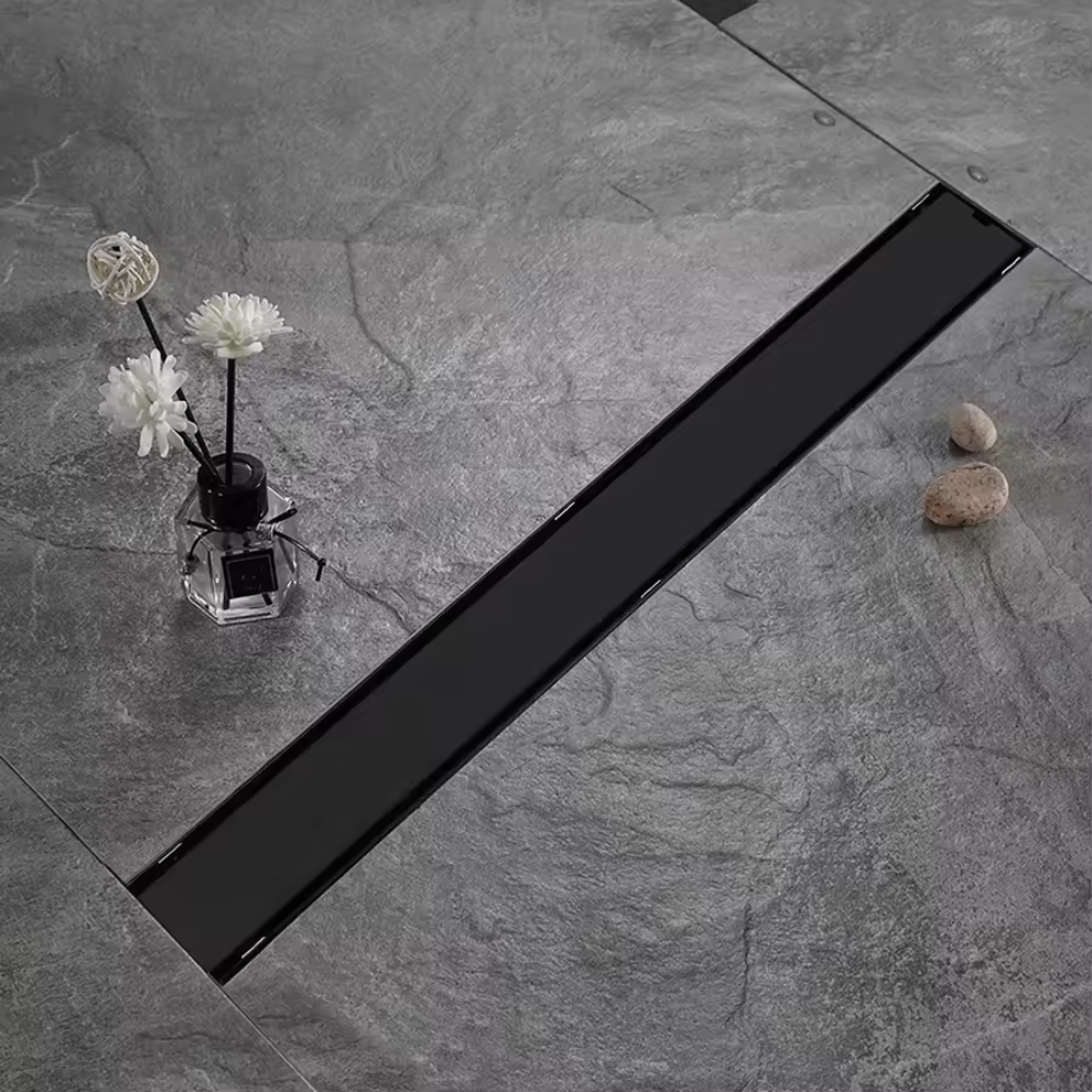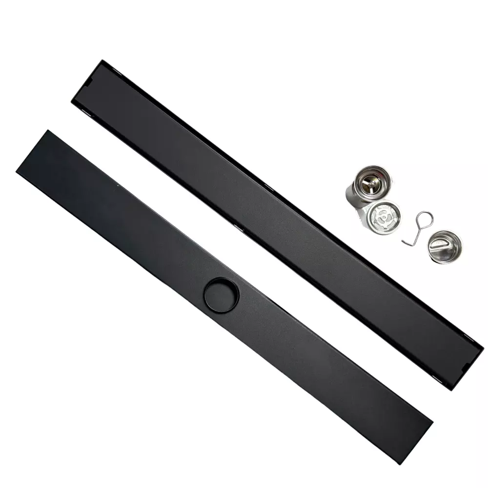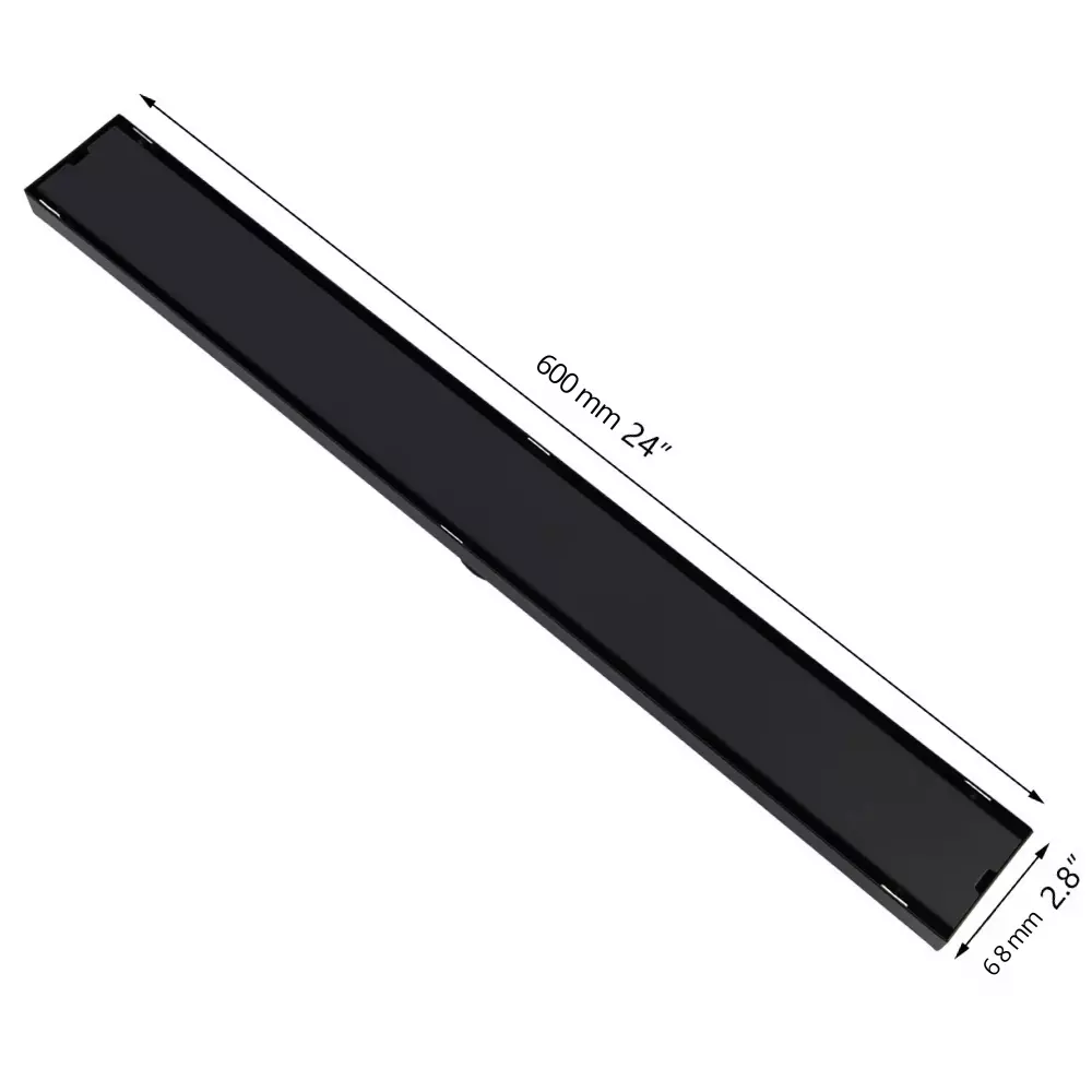 Трап для душу та ванної кімнати під плитку з нержавіючої сталі для зливу води, лінійний, підлоговий 60х6. 8х2 см,чорний