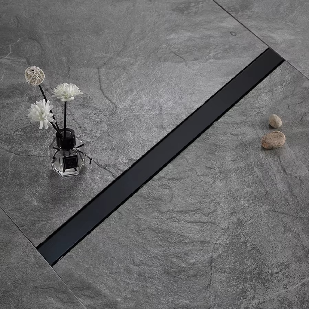 Трап для душу та ванної кімнати під плитку з нержавіючої сталі для зливу води, лінійний, підлоговий 90х6. 8х2 см,чорний