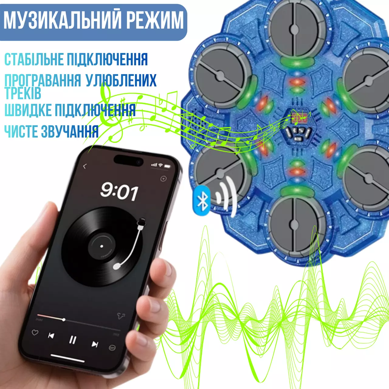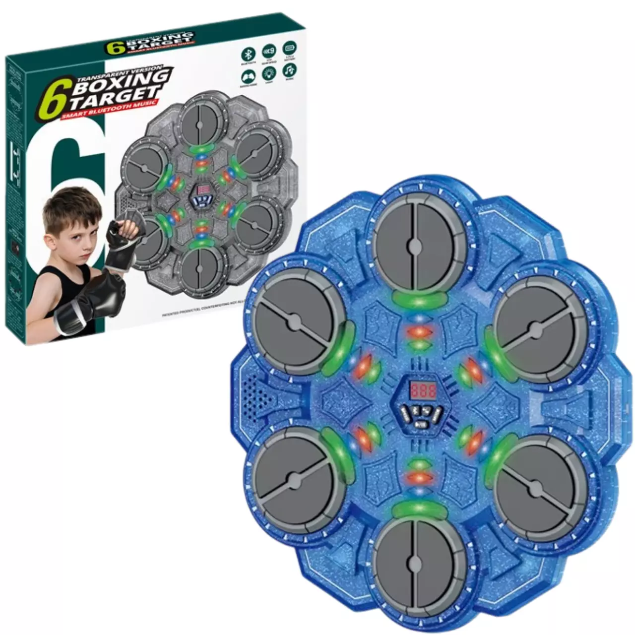 Тренажер для боксу на 6 цілей з рукавичками, дитяча мішень, акумуляторний, музичний, з Bluetooth, колір: прозоро-синій