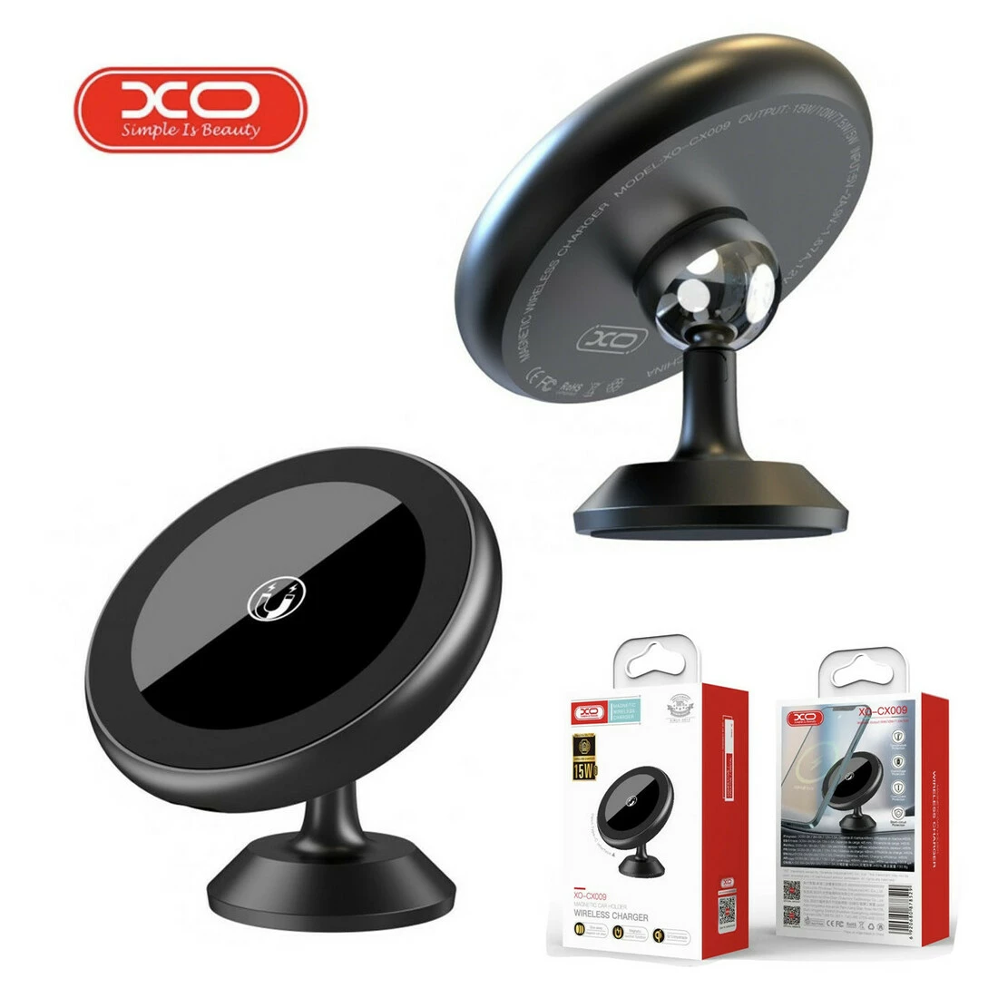 Тримач автомобільний магнітний з функцією бездротової зарядки XO CX009 15W Чорний