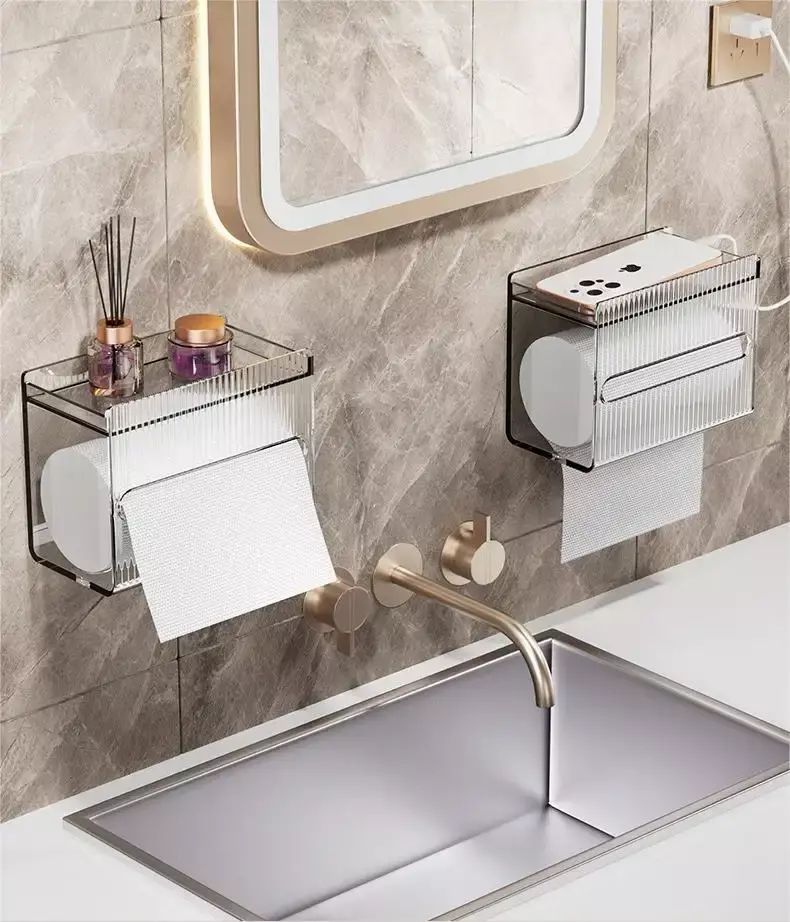 Тримач легко монтується на стіну, звільняючи простір на столі або раковині. Прозорий сучасний дизайн гармонійно впишеться в будь-який інтер'єр, додаючи елегантності та порядку. Місткий контейнер знижує частоту заміни паперових рушників, а універсальність використання дозволяє застосовувати його для зберігання як серветок, так і туалетного паперу.
