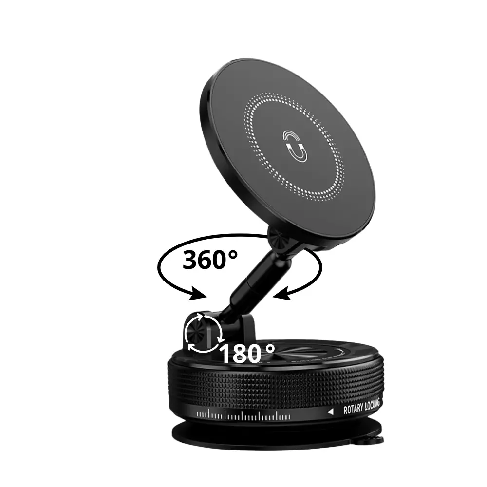 Тримач для телефону, автомобільний, Магнітний на присоску з функцією обороту на 360, універсальний для машини або будинку, чорний