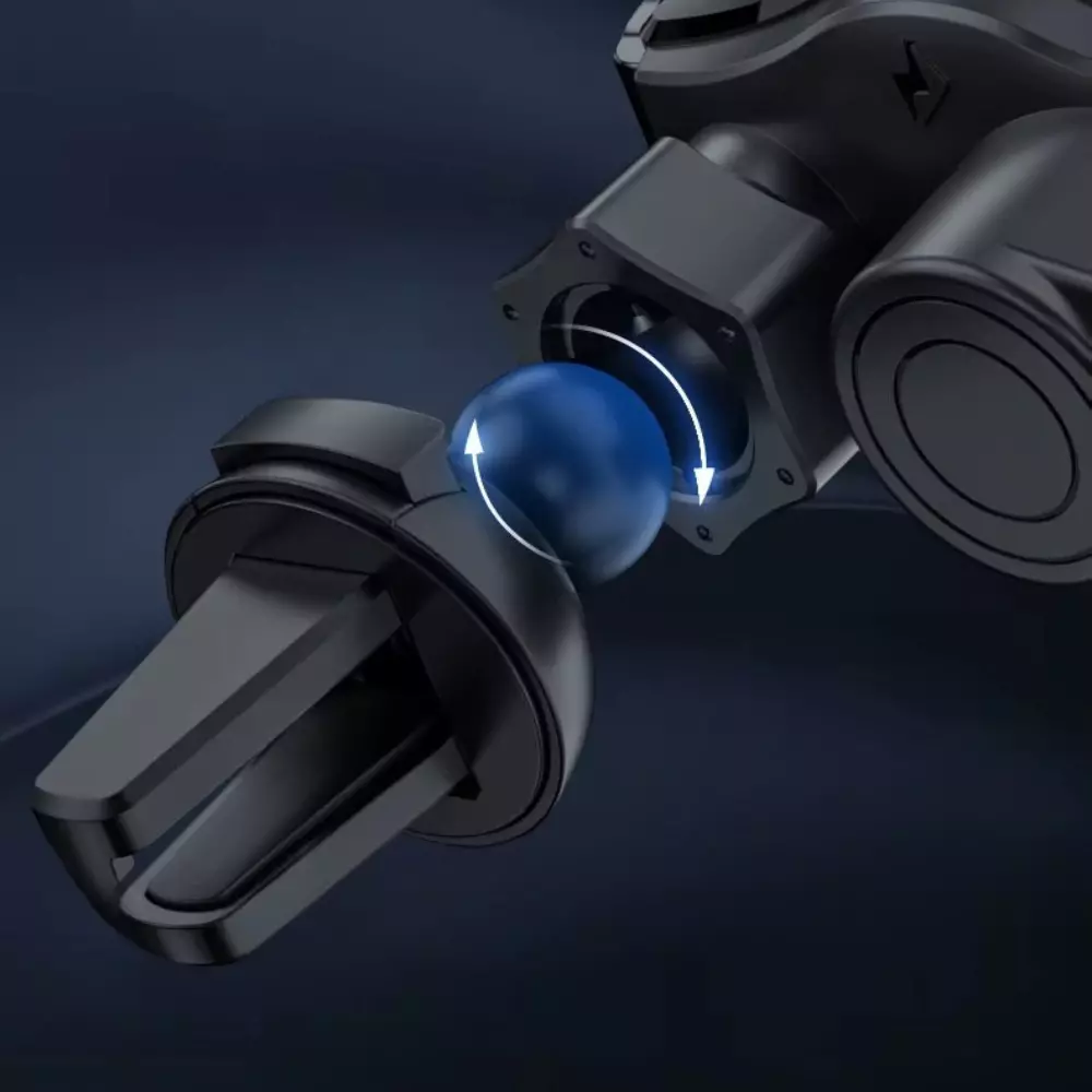 Тримач для телефону, автомобільний з бездротовою зарядкою 15W в машину з поворотом на 360 градусів,чорний