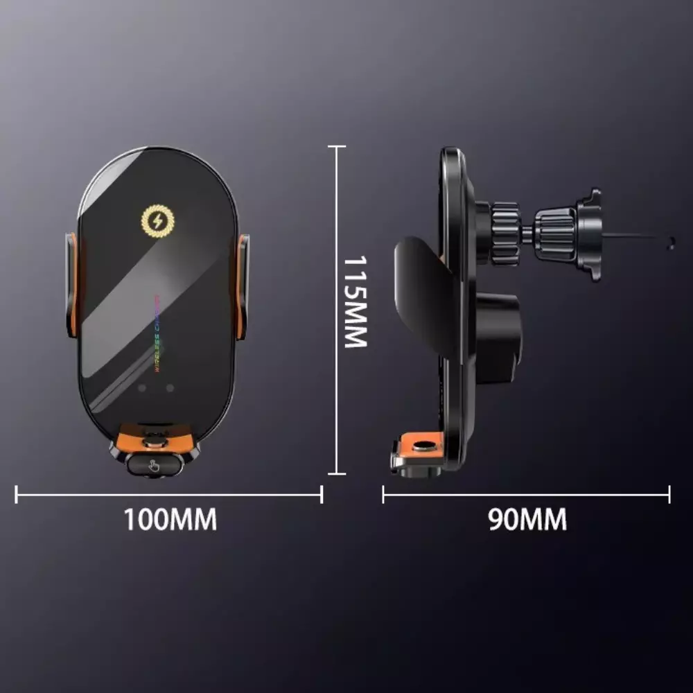 Тримач для телефону, автомобільний з бездротовою зарядкою 15W з функцією автоматичного відкриття і закриття, чорний