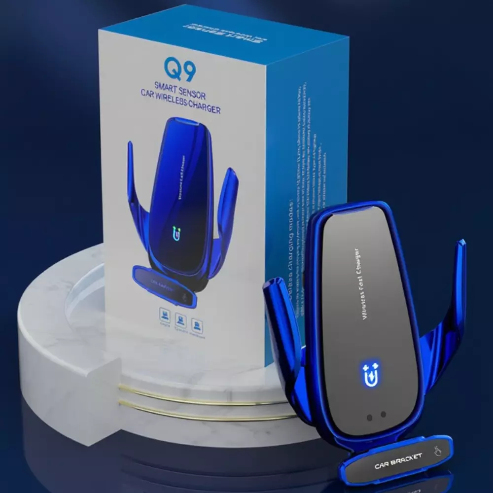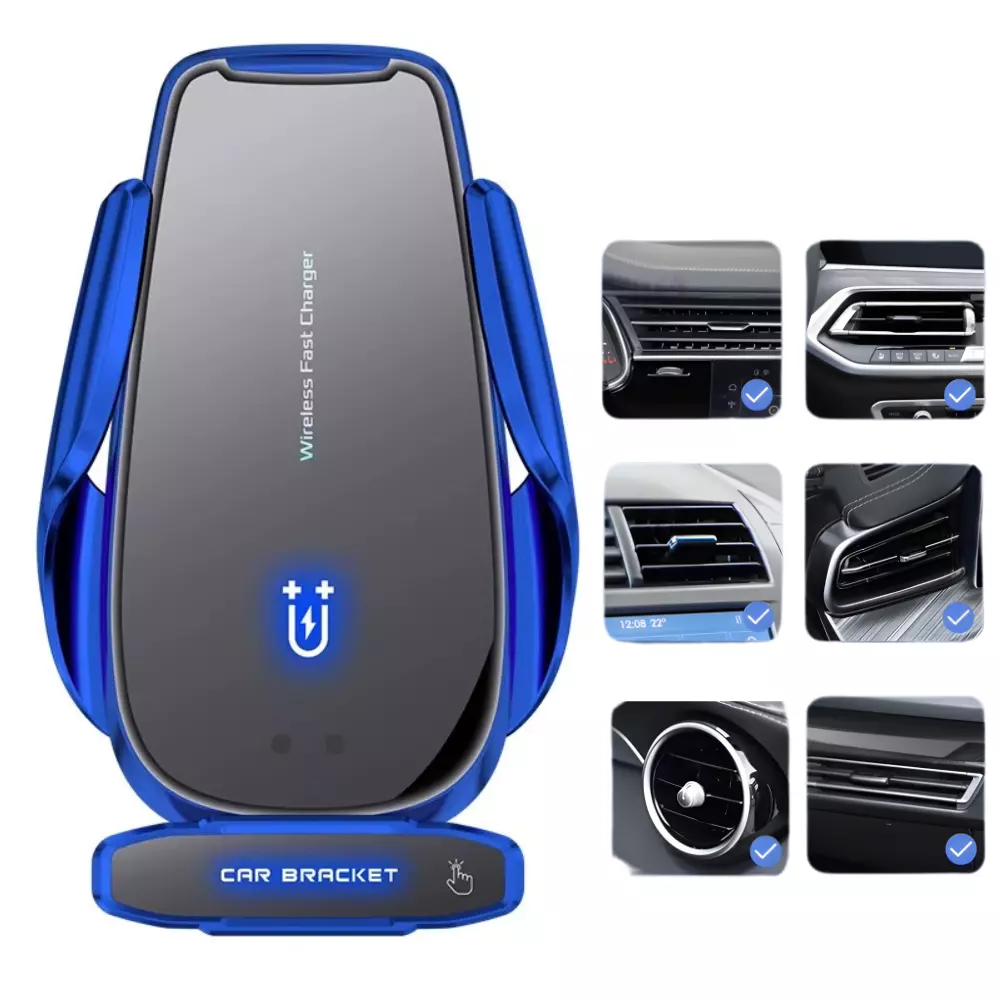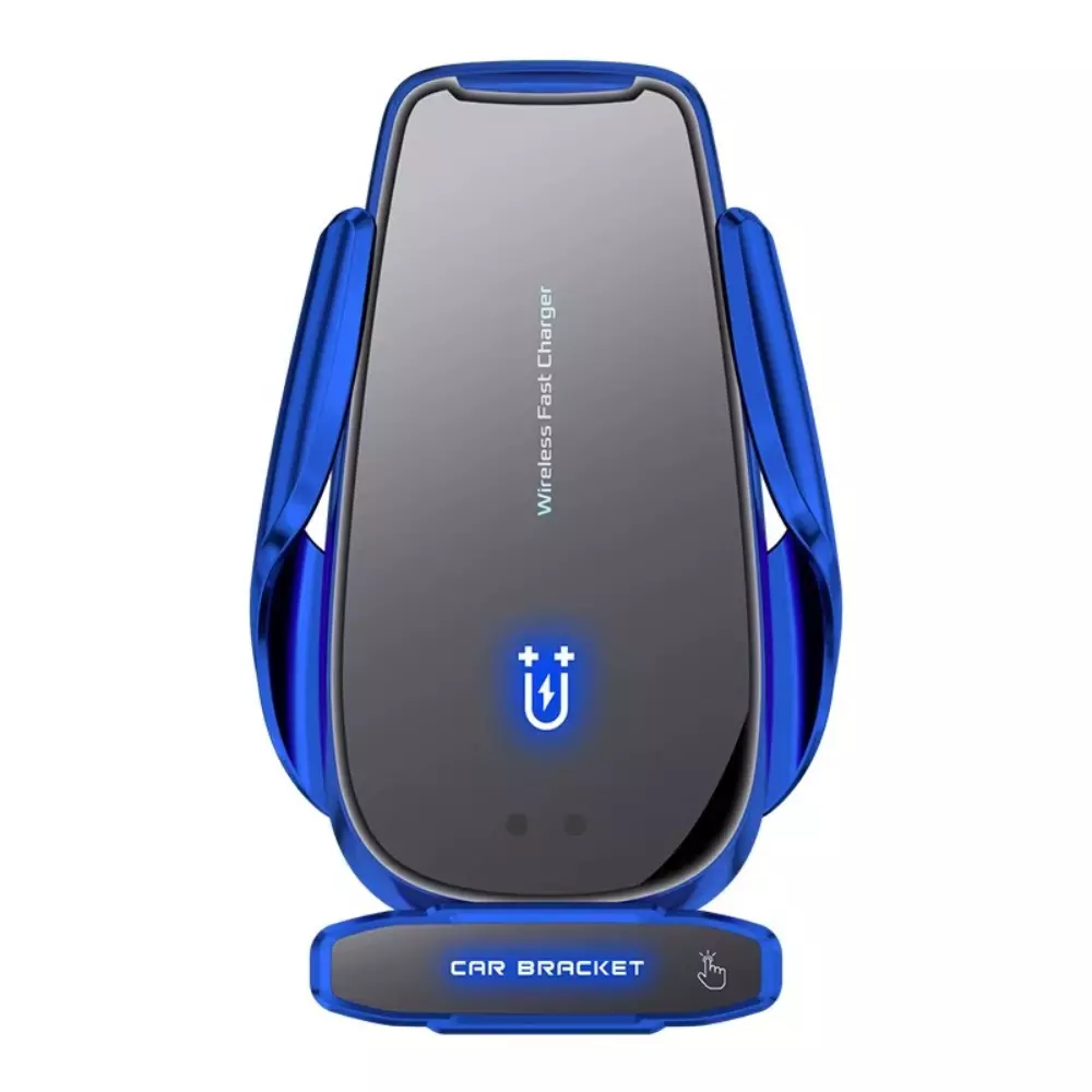 Тримач для телефону, автомобільний з бездротовою зарядкою 15W з функцією автоматичного відкриття, синій