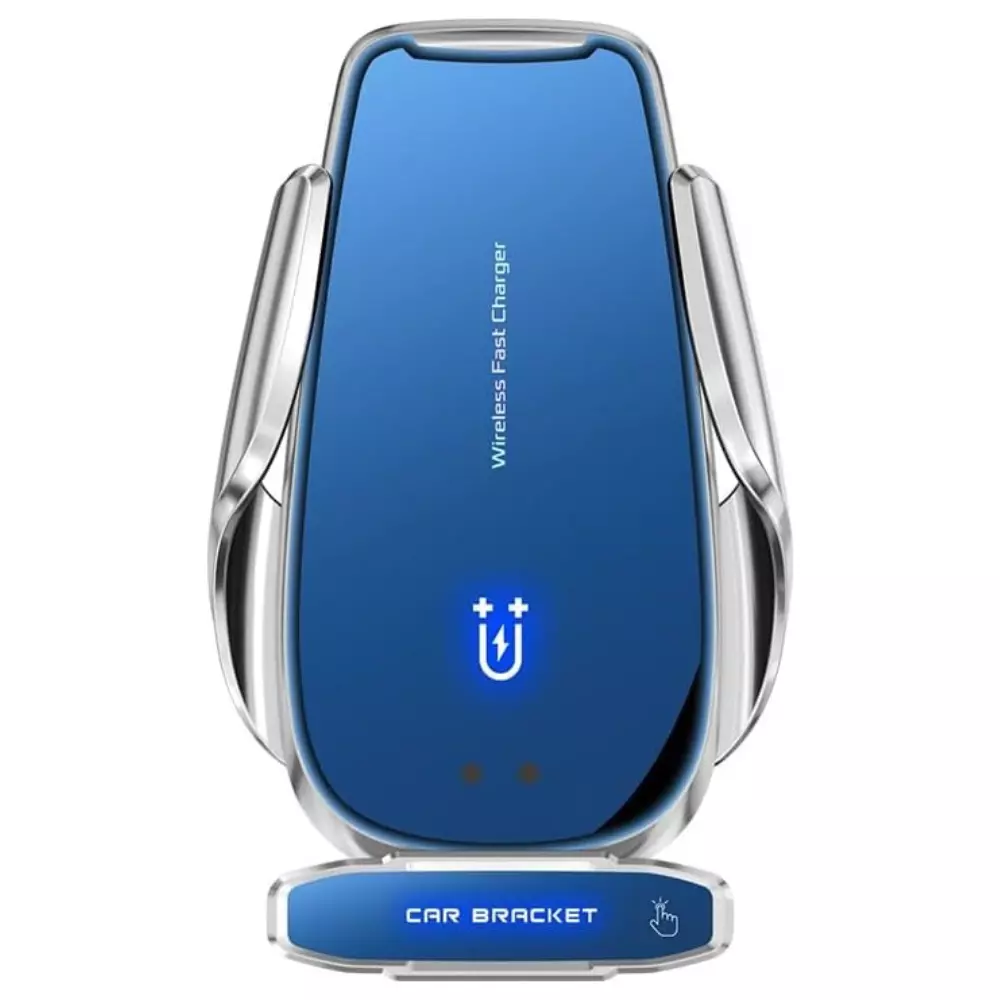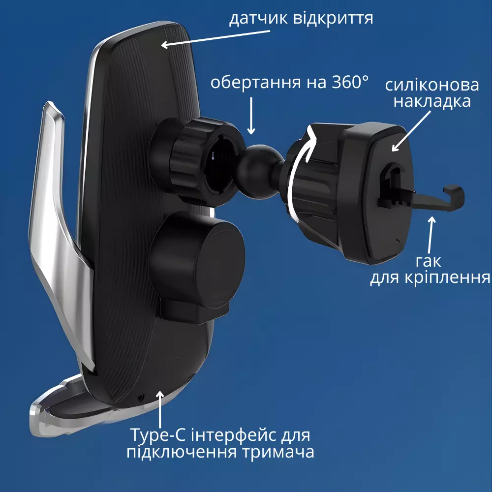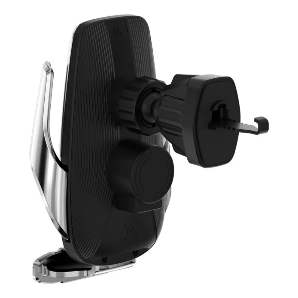 Тримач для телефону, автомобільний з бездротовою зарядкою 15W з функцією автоматичного відкриття, сріблястий
