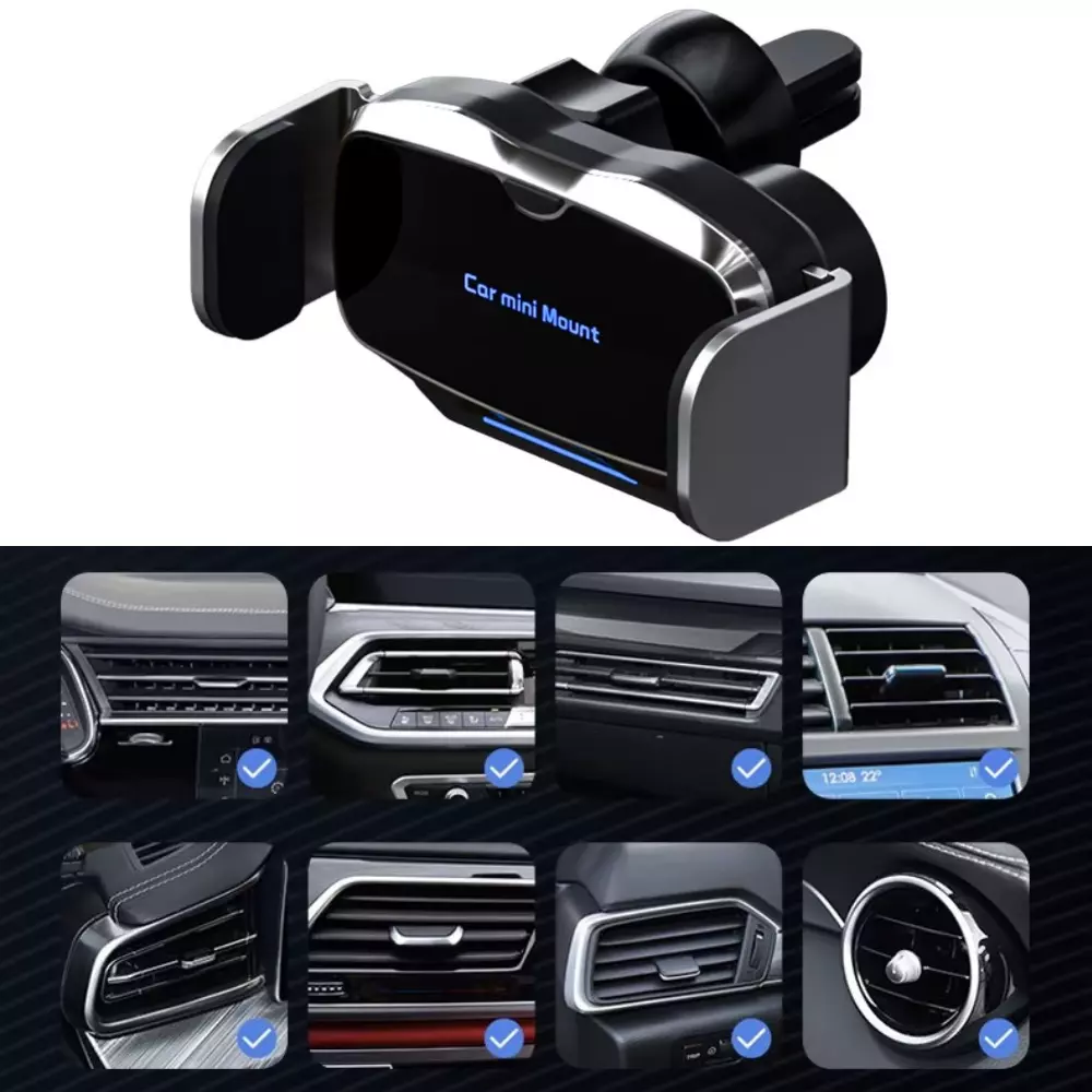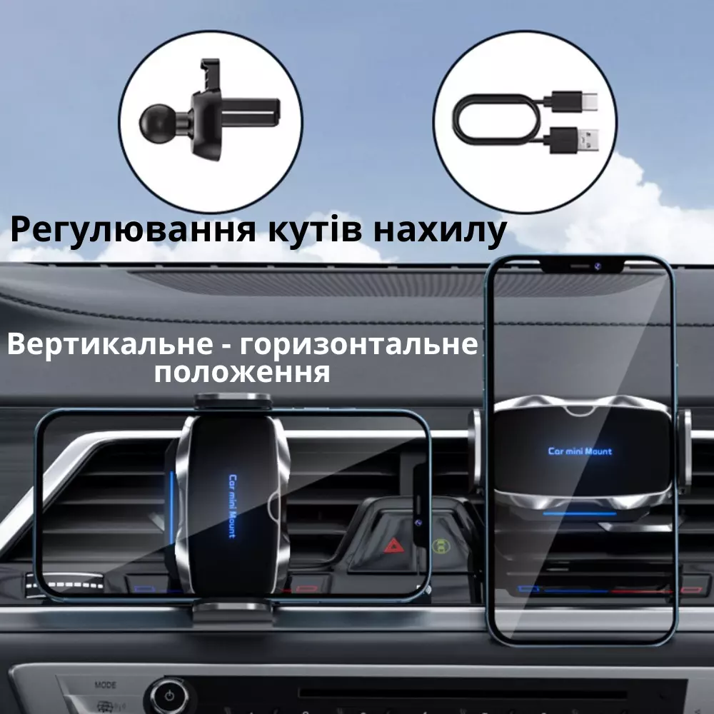 Тримач для телефону, автомобільний з бездротовою зарядкою 5W в машину з поворотом на 360 градусів,сріблястий