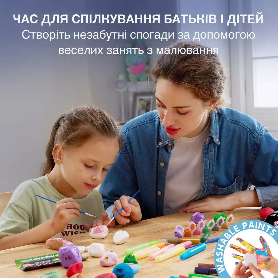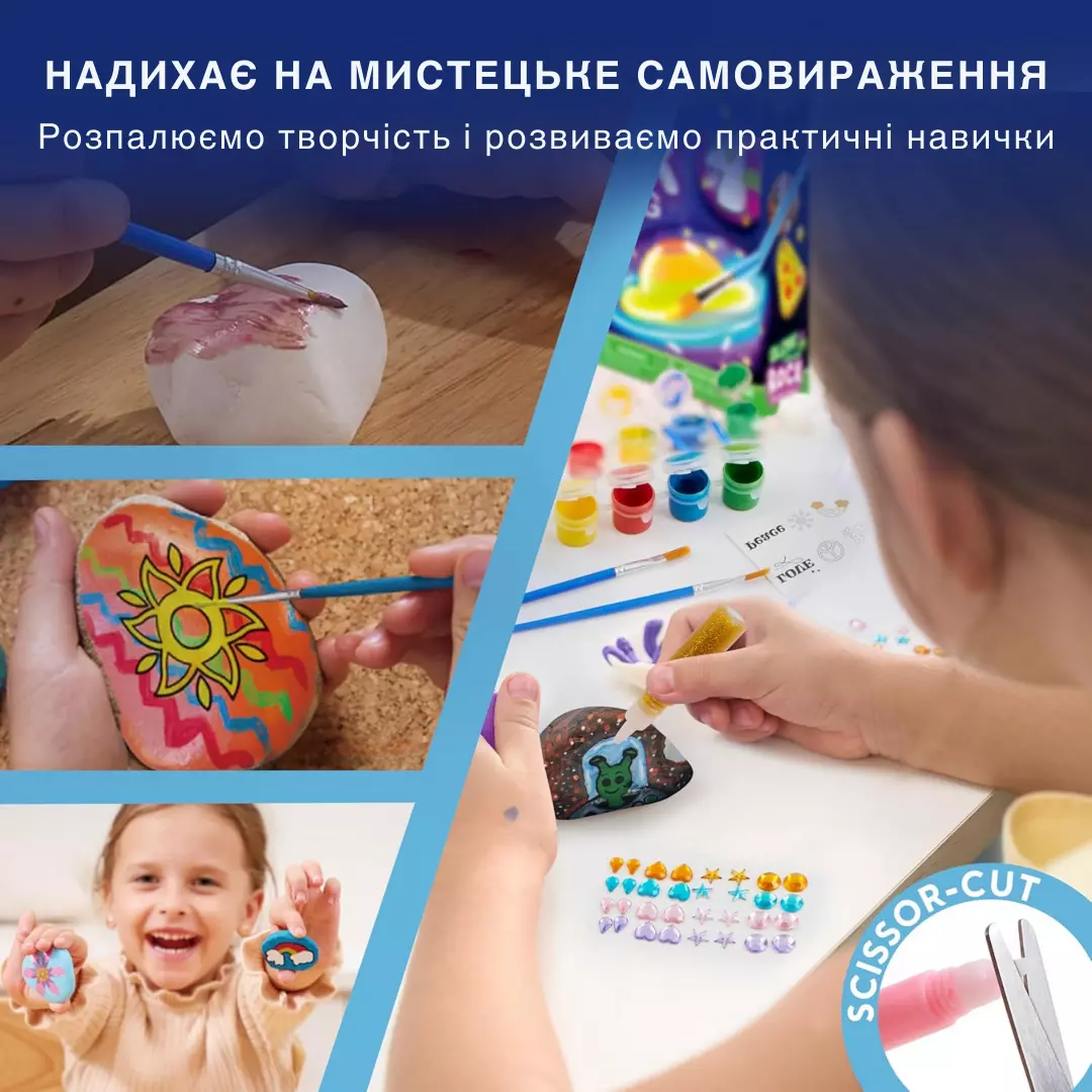 Розвиток творчості та уяви – малювання на каменях допомагає дітям розкрити художній потенціал, експериментувати з кольорами, текстурами та візерунками.