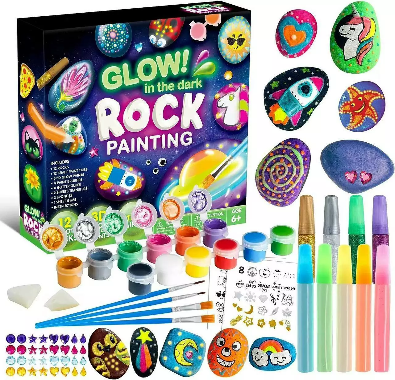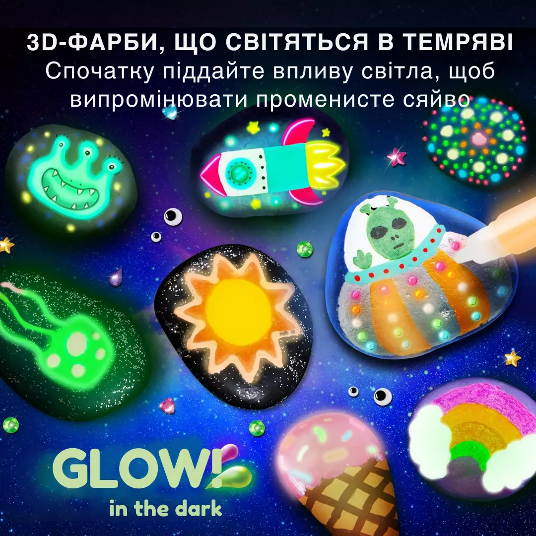Творчий набір для малювання на камені: фарби, що світяться, пензлі, наклейки, комплект для хобі та дітей