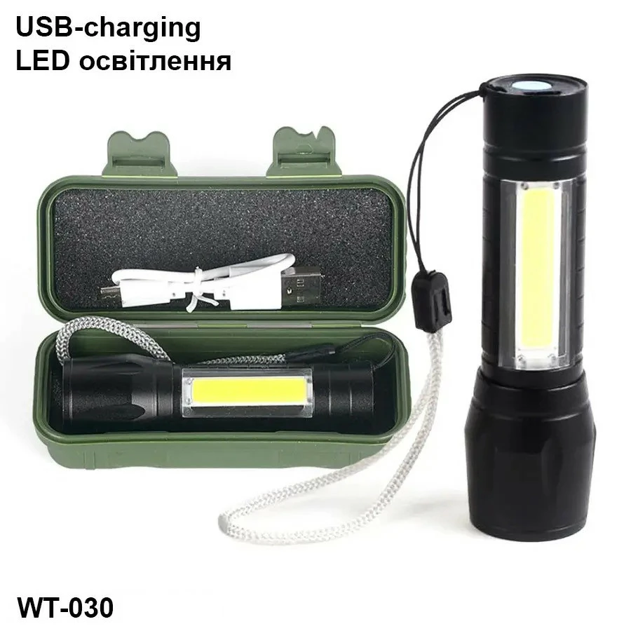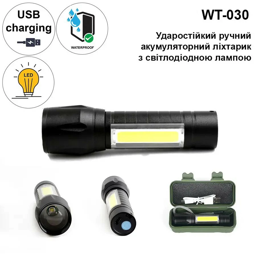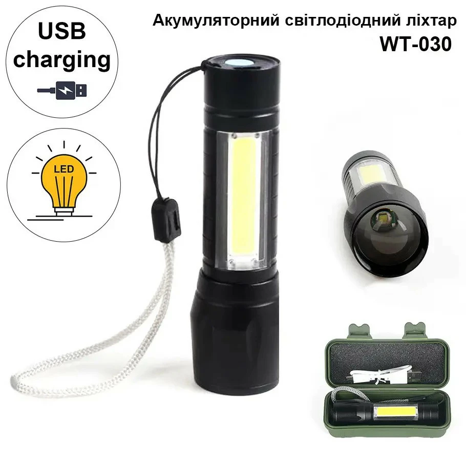 Удароміцний ручний акумуляторний ліхтарик Powedex WT-030, міні ліхтар кишеньковий алюмінієвий