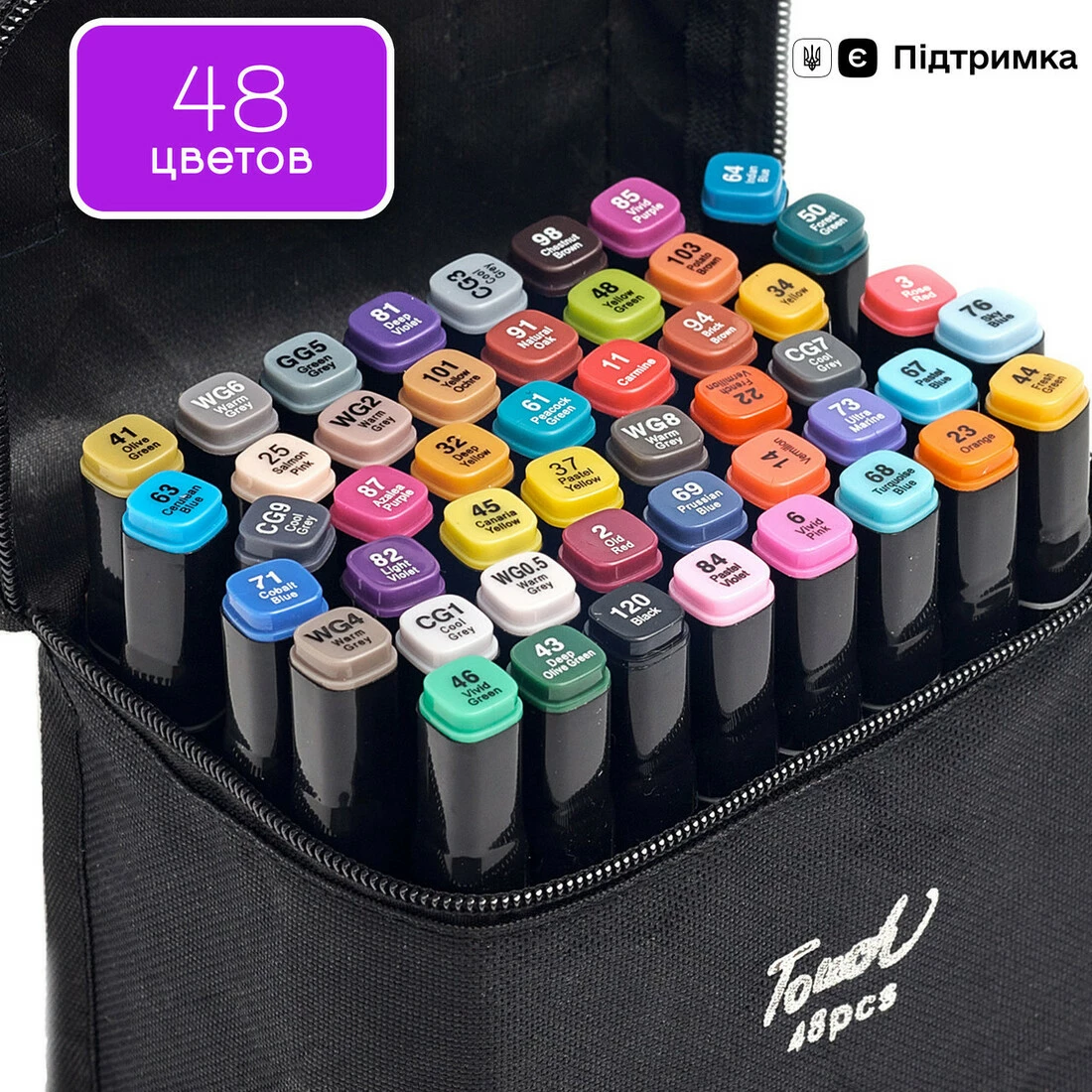 Величезний Набір скетч маркерів 48 кольорів Touch Raven для малювання, в чорному чохлі