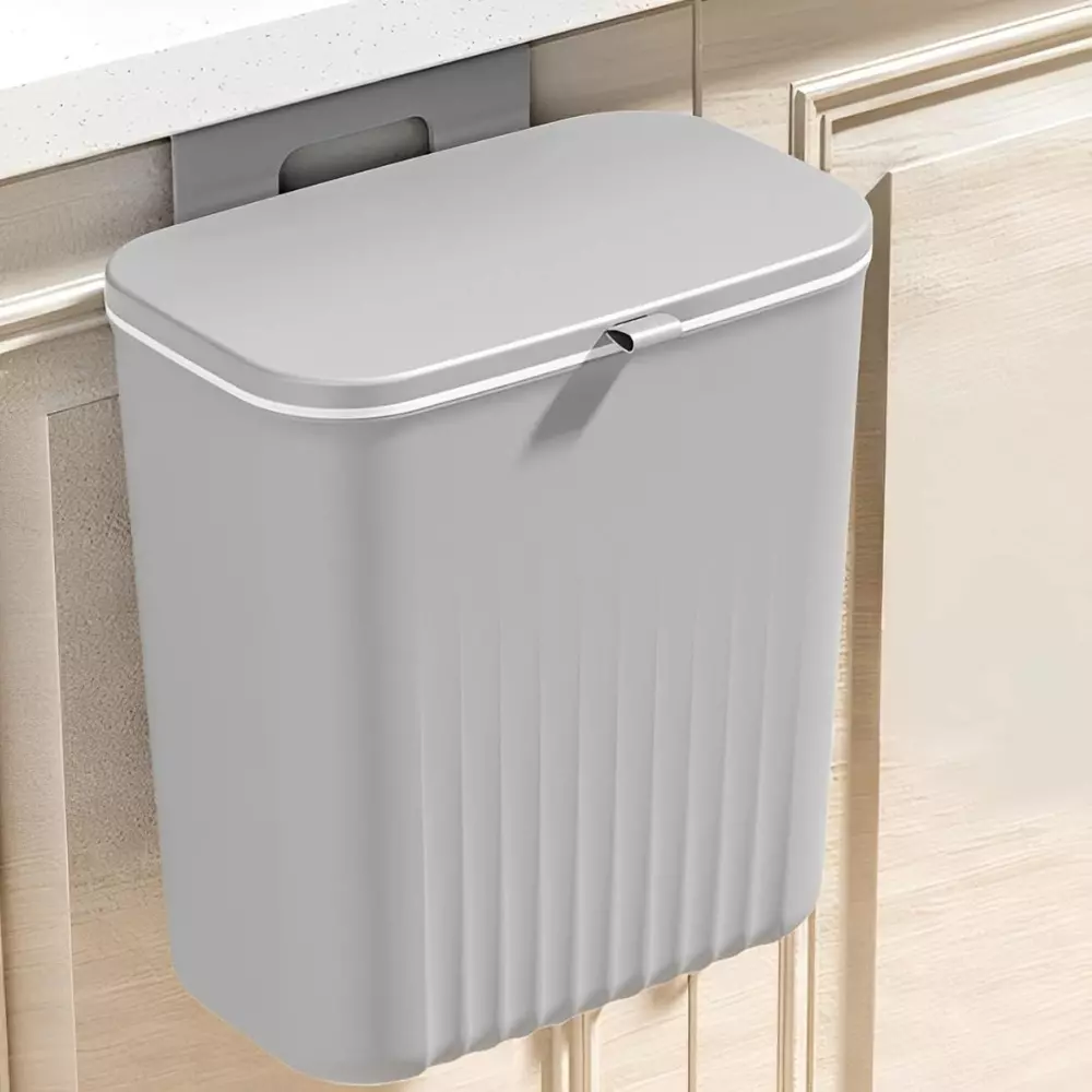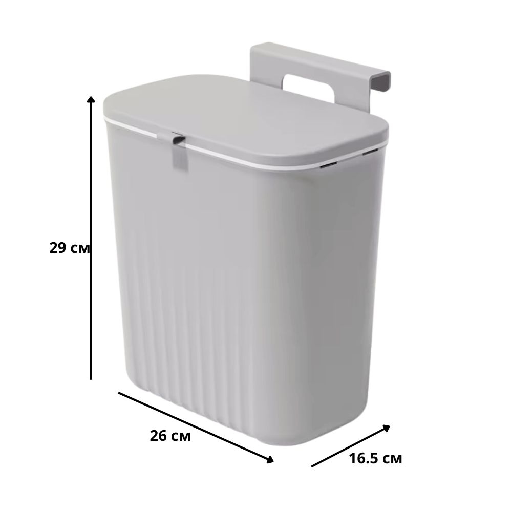 Відро з кришкою для сміття кухонне, контейнер для відходів навісний на двері, пластикове, колір сірий