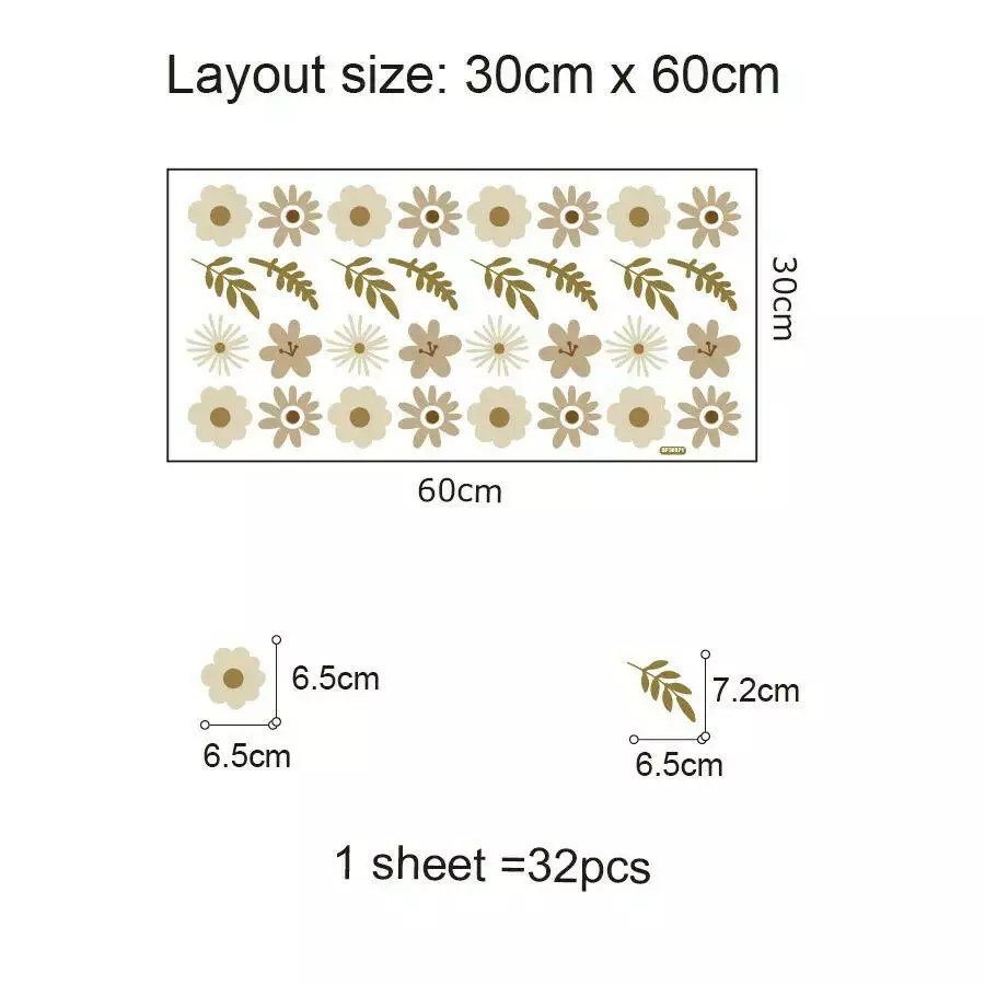 Композиція включає 4 види квітів і витончені листочки різних розмірів і форм. Легкість монтажу дає змогу швидко і без зусиль прикріпити наклейки на будь-яку рівну поверхню. Вініловий матеріал ПВХ забезпечує довговічність і стійкість до зношування, зберігаючи яскравість і свіжість кольорів протягом довгого часу.