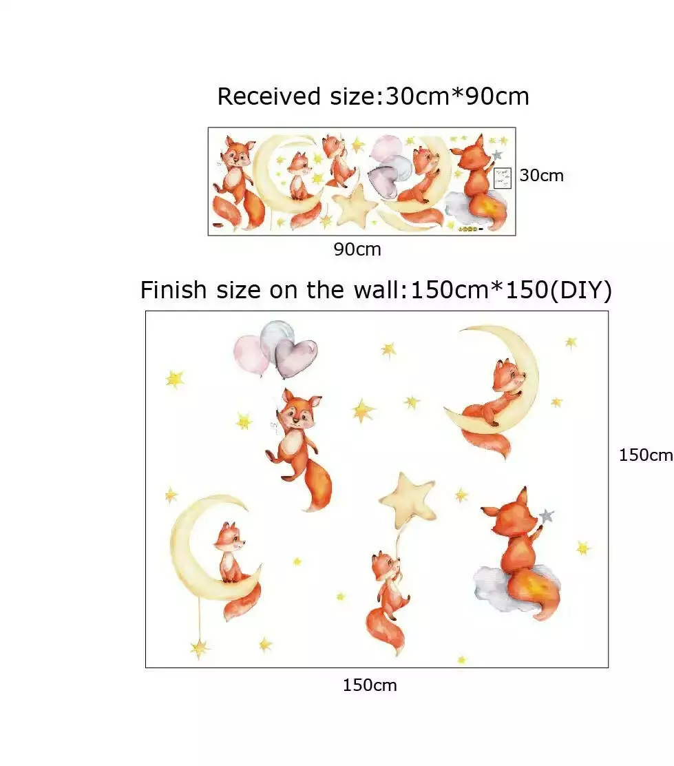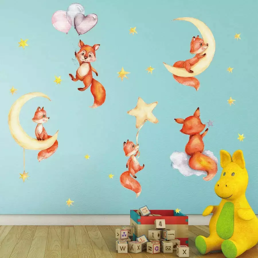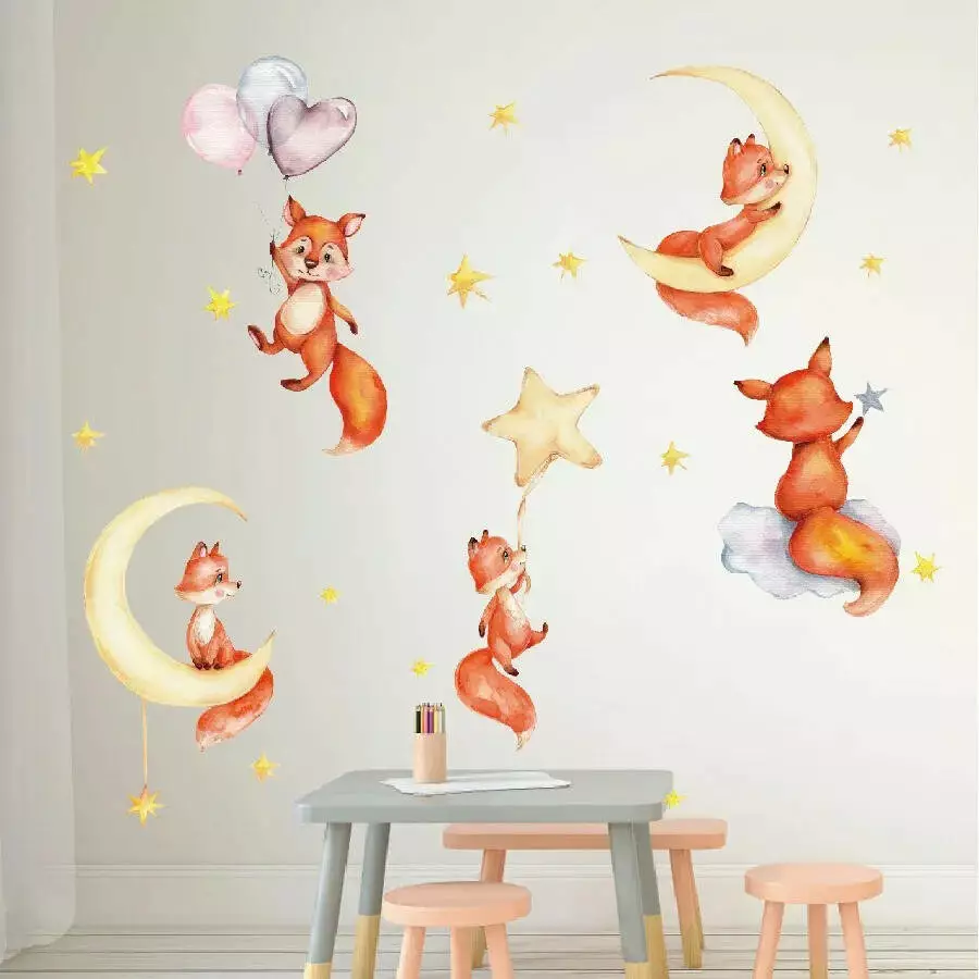 Створіть у дитячій кімнаті атмосферу казкового нічного неба за допомогою вінілових наліпок «Грайливі лисички». На композиції зображені п'ять милих лисичок, які бавляться серед зірок, катаються на повітряних кульках і місяці. Ці кумедні сцени подарують радість вашій дитині та надихнуть її фантазію.
