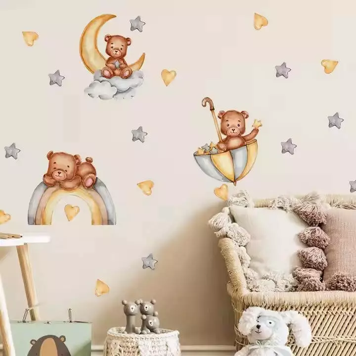 Цей набір стане чудовим вибором для створення затишку і казкового настрою в дитячій кімнаті. Малюки будуть у захваті від ведмежат, які так красиво прикрашають простір. Наклейки легко приклеюються і видаляються, не залишаючи слідів, що робить їх універсальним рішенням для будь-якого інтер'єру.