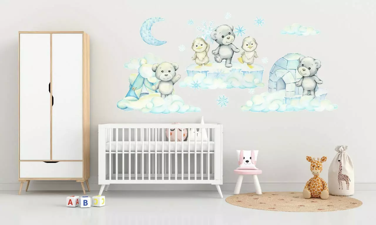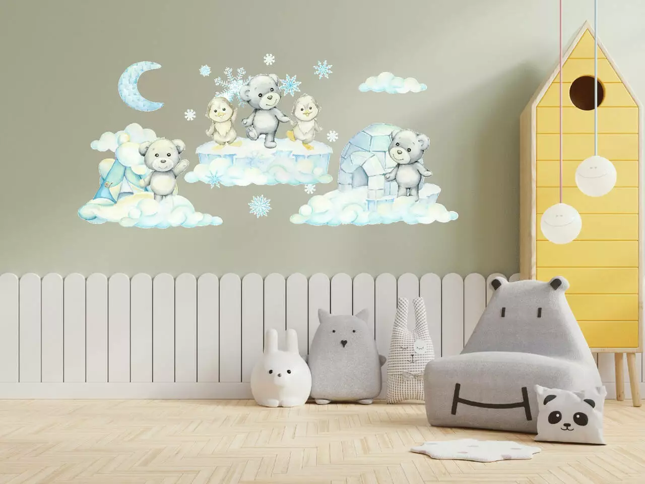 Наклейки легко наносяться і знімаються, не залишаючи слідів, що дозволяє змінювати декор залежно від настрою або тематики. Оригінальний дизайн із ведмежатами та пінгвінами створює затишну та добру атмосферу, яка сподобається як дітям, так і дорослим.