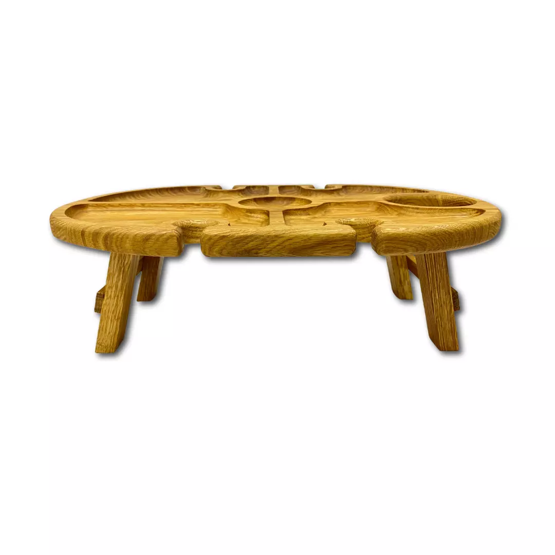 Ясень відомий своєю міцністю і красивою природною текстурою, що робить столик не тільки функціональним, але й стильним елементом декору. Завдяки складним ніжкам його легко зберігати і транспортувати. Столик стійкий на різних поверхнях, що робить його ідеальним як для дому, так і для використання на свіжому повітрі.