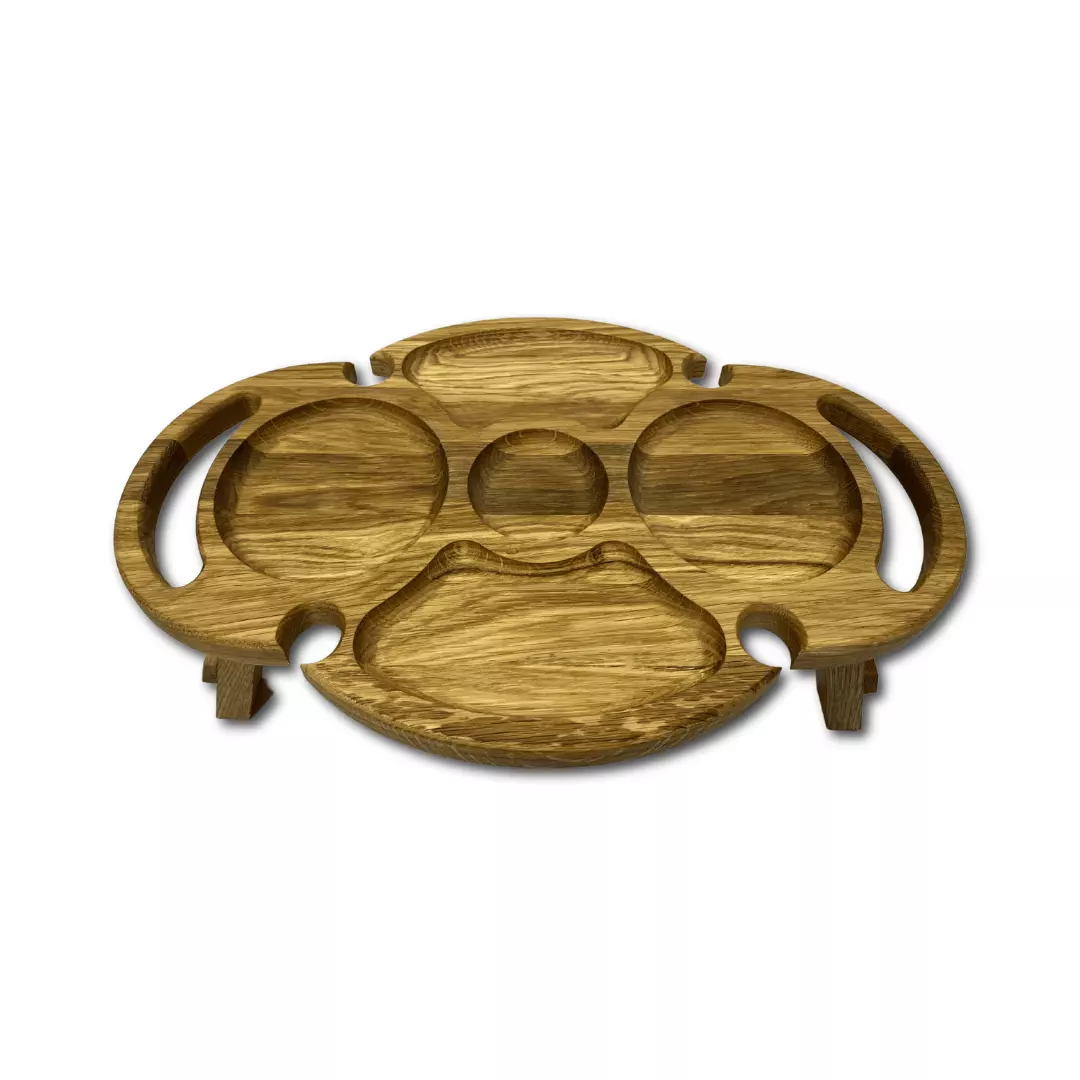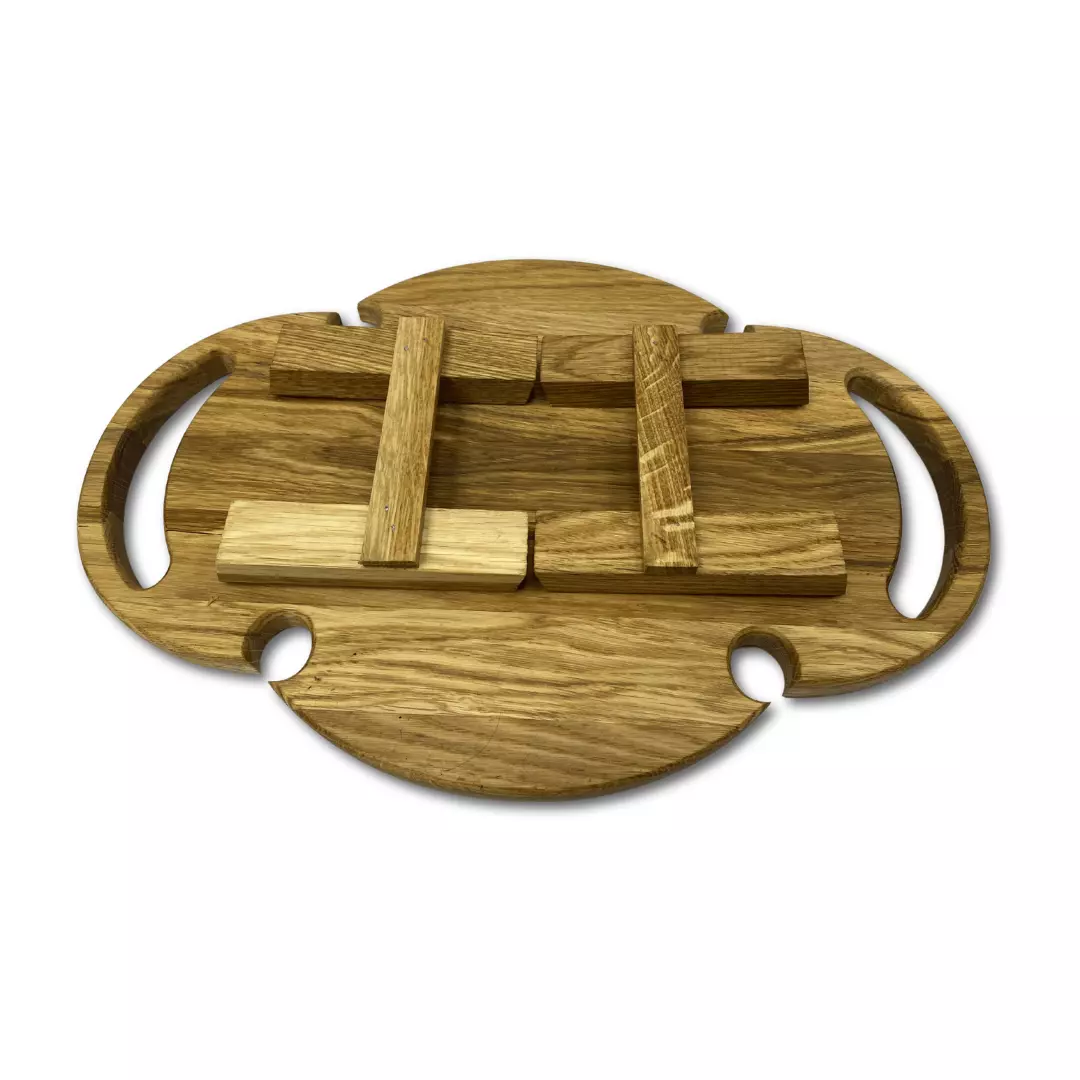 Винний столик з ясена, піднос складний овальний піднос 44×30см з ніжками і тримачами для 4 келихів