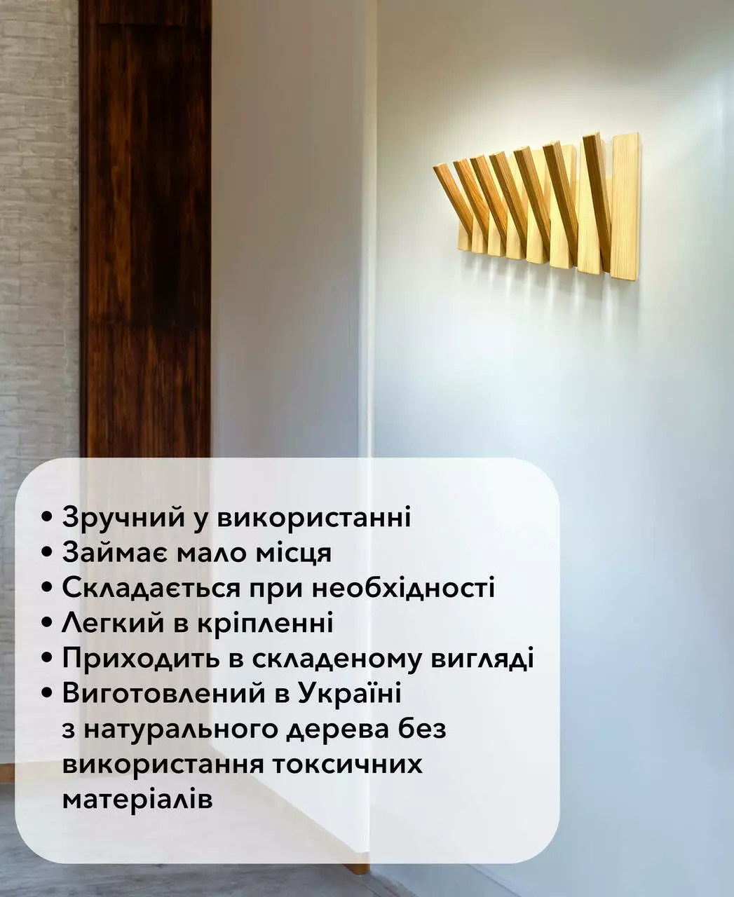 Наш настінний вішак створений, щоб робити ваше життя більш зручним та організованим, додаючи природну красу до вашого простору.