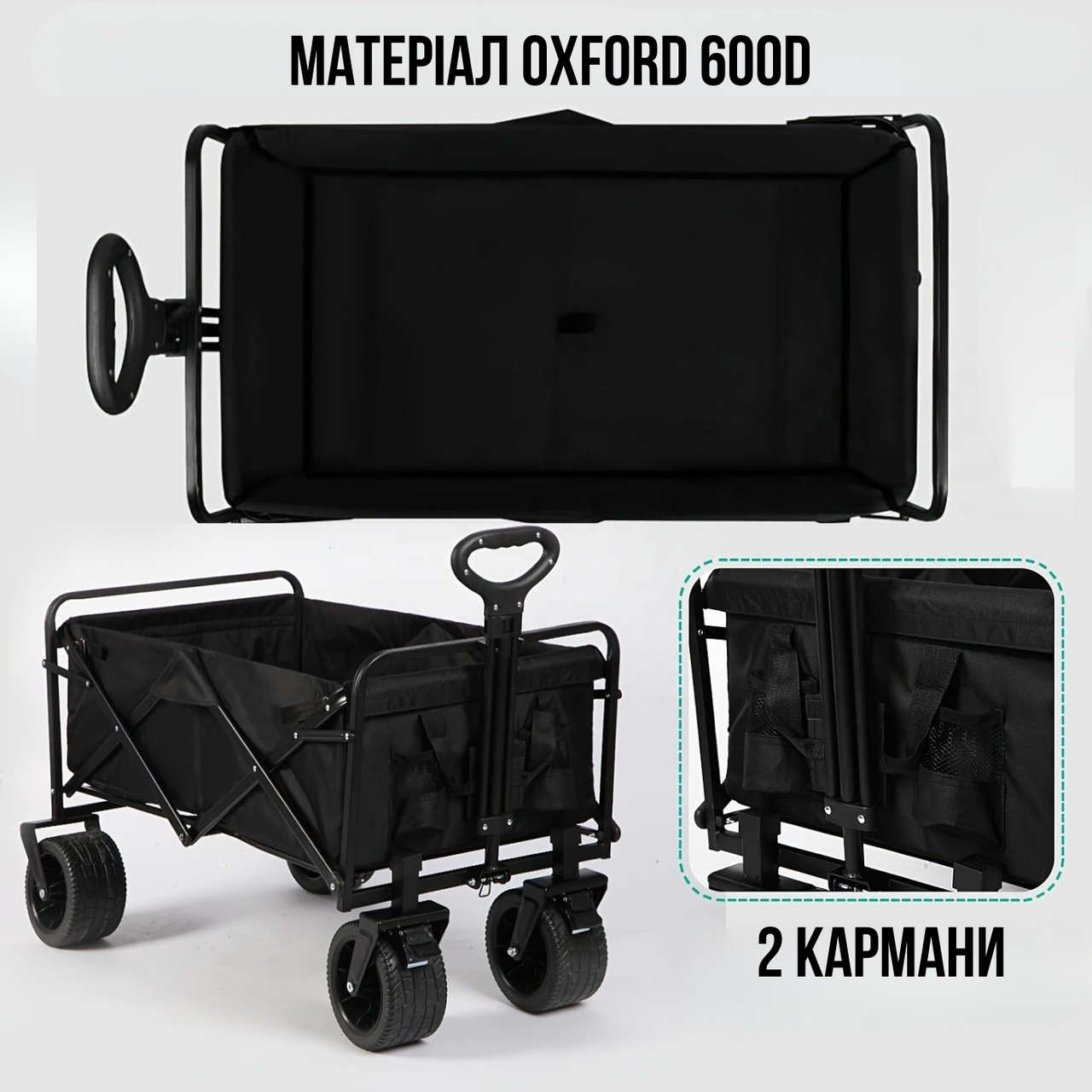 Візок складаний для транспортування речей і продуктів, універсальний для походів в магазин, кемпінгу, перевезення і зберігання