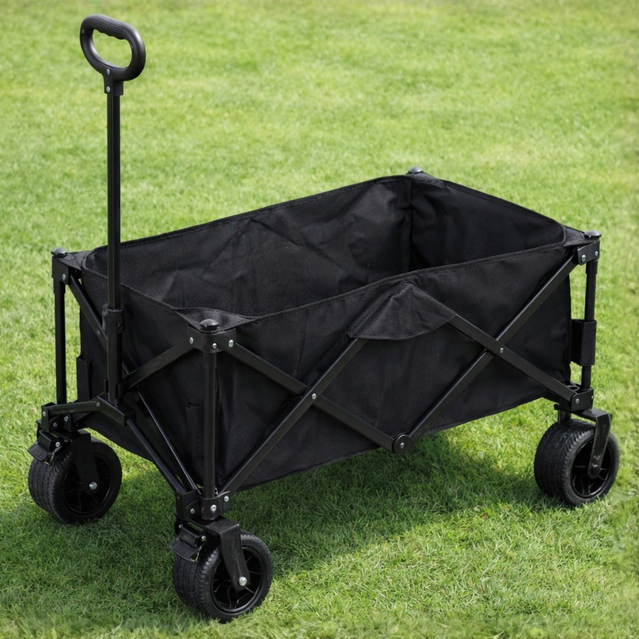 Візок оснащений регульованою по висоті ручкою (76–99 см), що забезпечує комфортне керування. Модель обладнана чотирма широкими 8-дюймовими tank-колесами (17×10 см), які забезпечують відмінну прохідність по піску, траві, ґрунту та нерівній поверхні. Легко складається для зручного зберігання та транспортування.