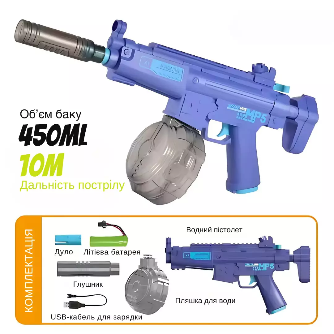 Водний пістолет для дітей, іграшковий водний автомат МР5 на акумуляторі, електричний бластер