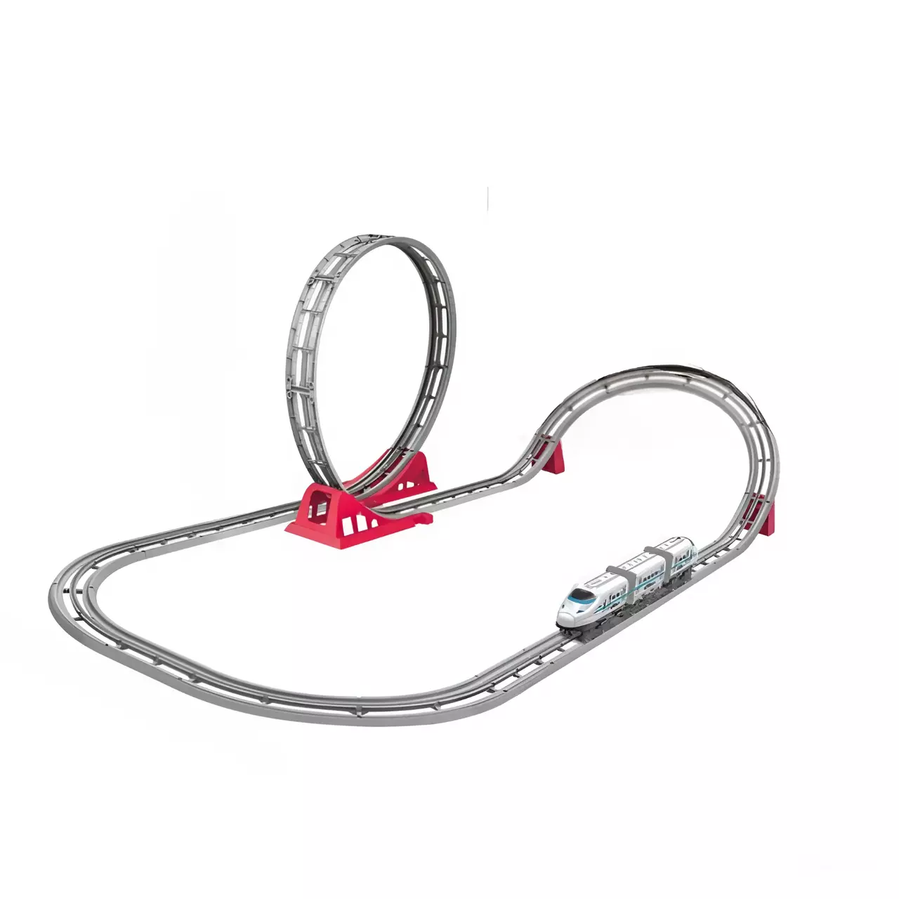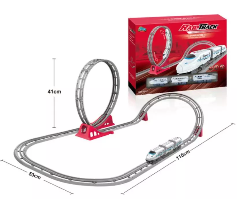 Трек включає мертву петлю висотою 41 см, що додає додатковий елемент захоплюючого екшену. Розміри треку (ширина 53 см, довжина 115 см) дозволяють дитині будувати різноманітні маршрути і випробовувати поїзд на максимальній швидкості. Поїзд працює від батарейок, що робить гру простою і зручною.