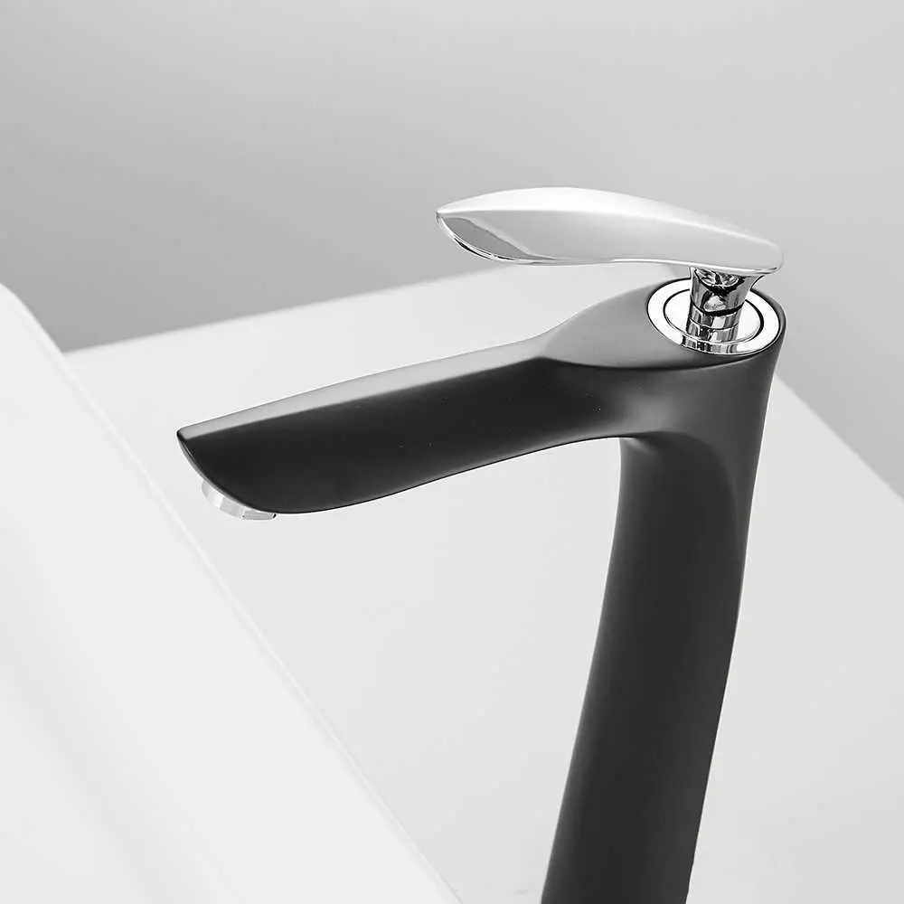 Змішувач дизайнерський для раковини кран у ванну одноважільний WanFan люкс якості Чорний-хром