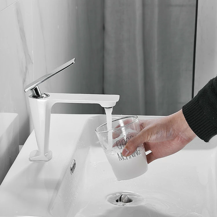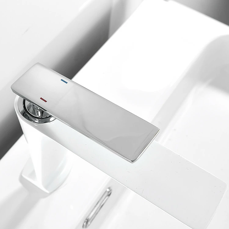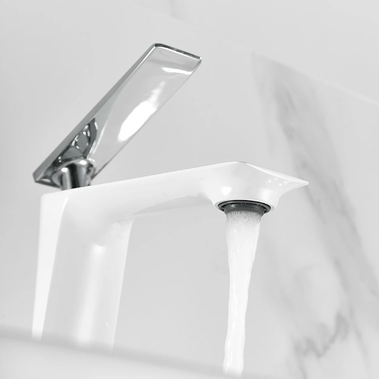 Змішувач дизайнерський для умивальника одноважільний кран горизонтальний монтаж WanFan Білий-хром